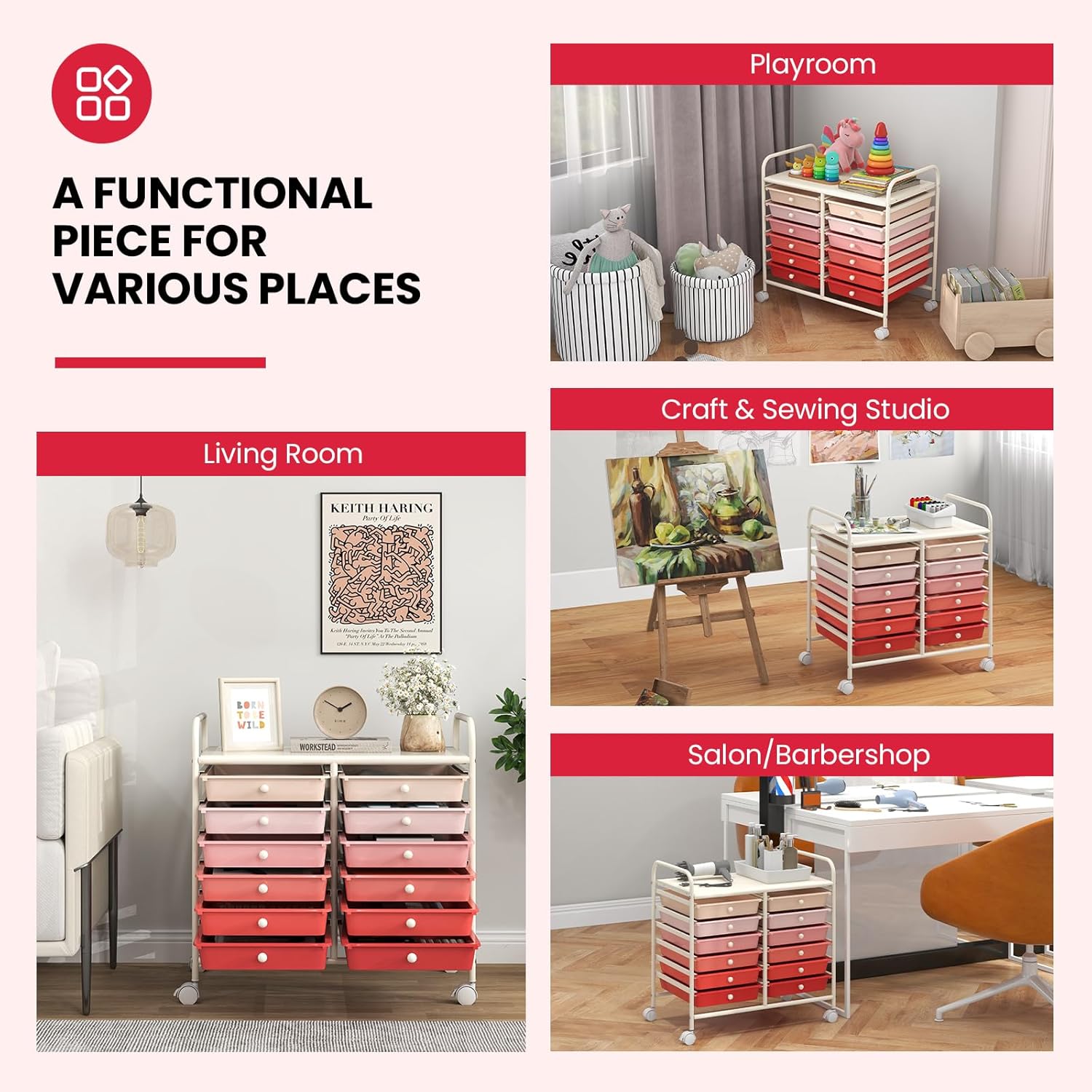 - [Multipurpose Utility Cart]: The drawer cart is a practical and stylish solution for living room storage, playroom storage, craft & sewing storage, salon/barbershop use. Vertical structure and multi-layer design save a lot of space.