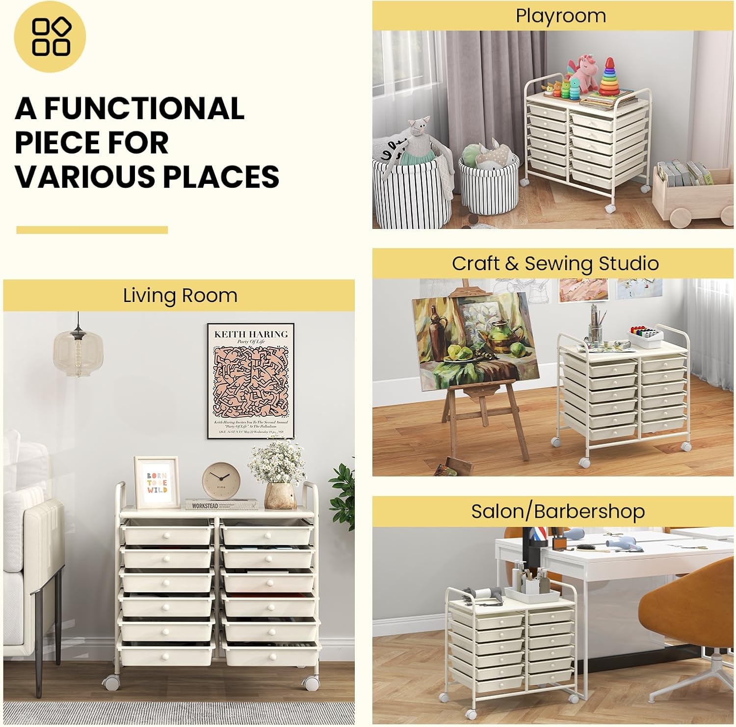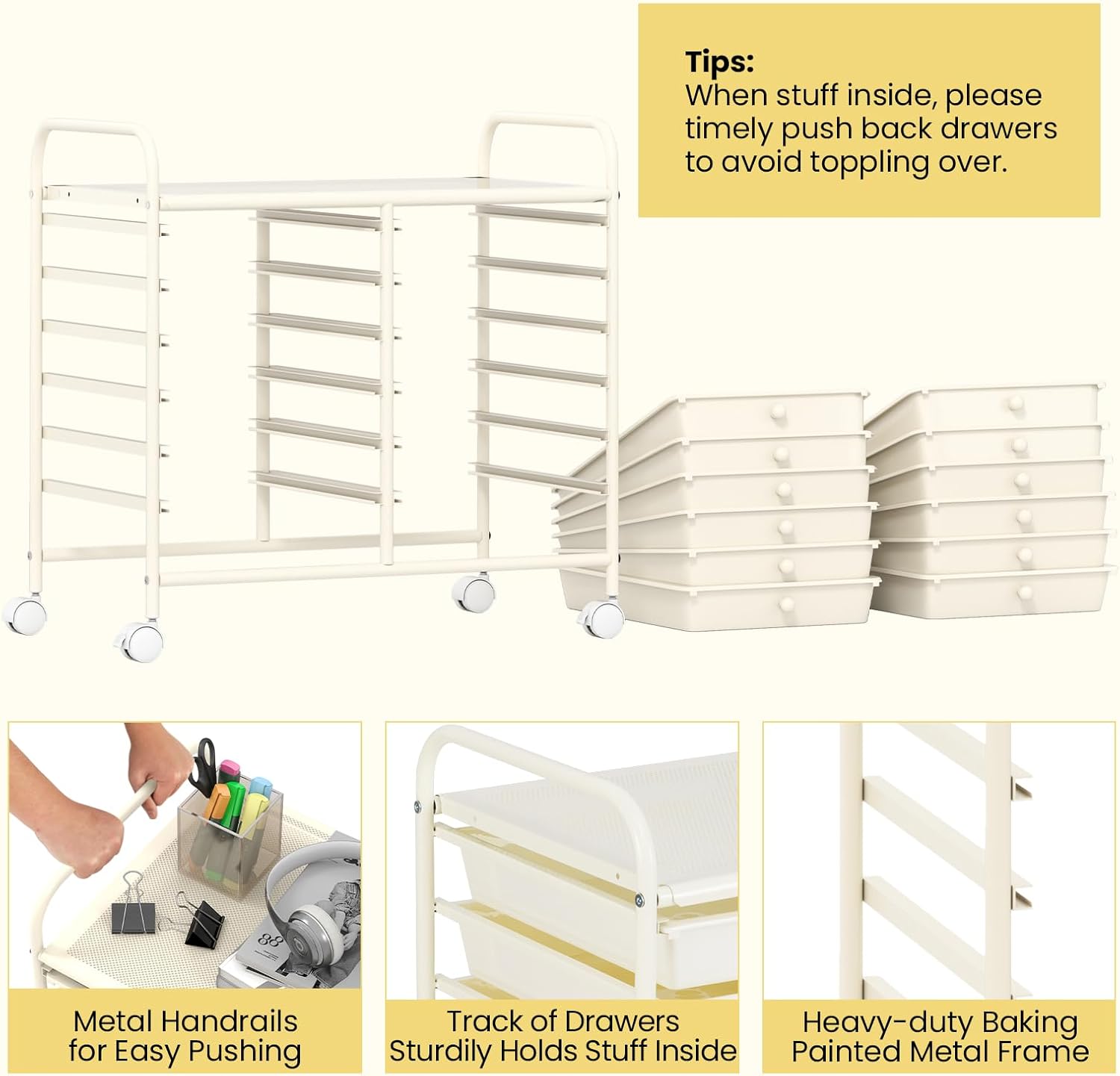 - [Sturdy & Durable Structure]: Crafted of heavy-duty baking painted metal frame, the 12-drawer storage cart provides enhanced support and long-term durability. More, durable PP drawers can withstand the test of time.