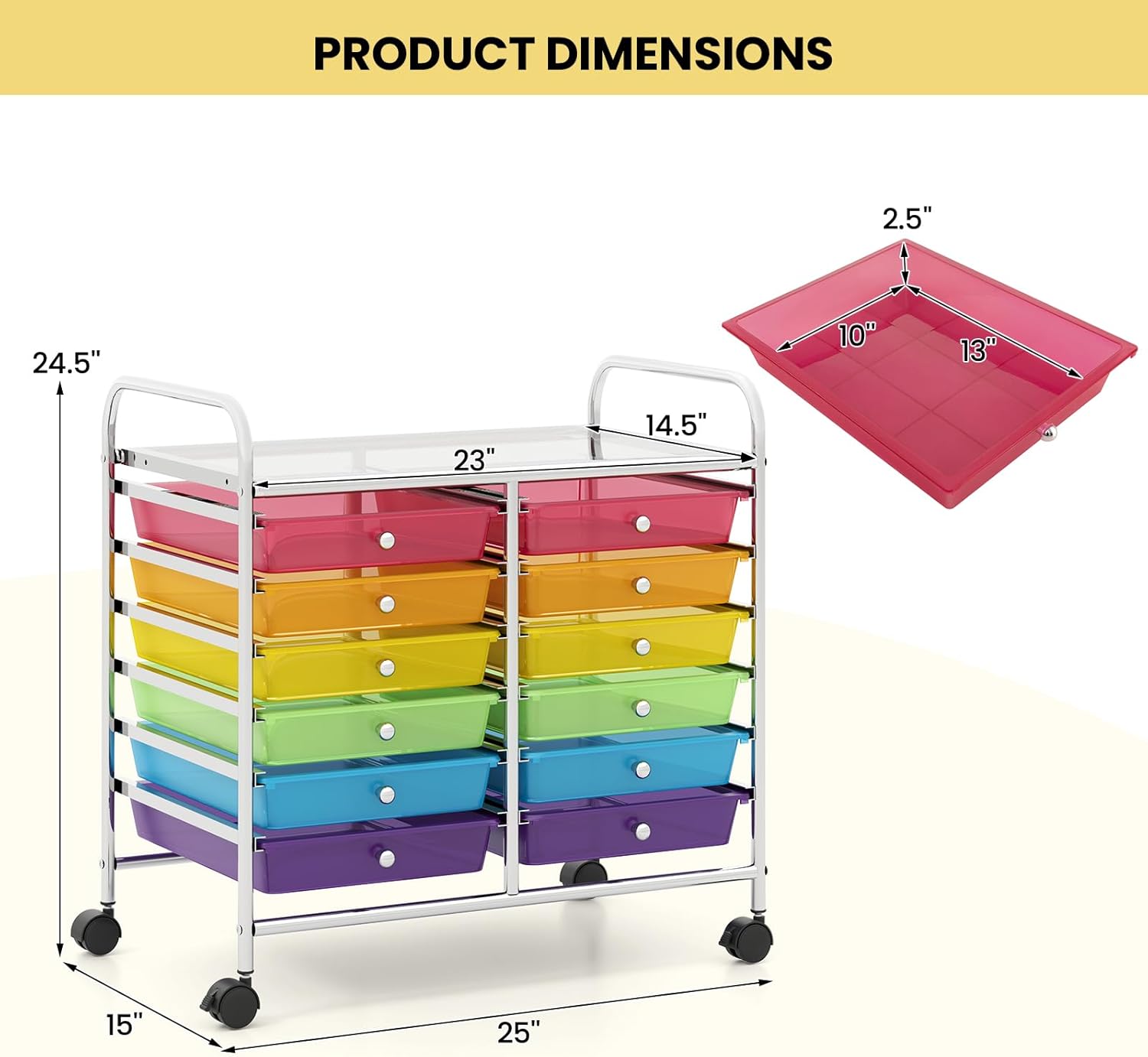 Giantex 12 Drawers Rolling Cart, Mobile Storage Drawer Cart, Classroom Organizer Cart for Office School Supplies Tools Scrapbook Paper Craft Small Printer, Utility Cart on Wheels, Rainbow