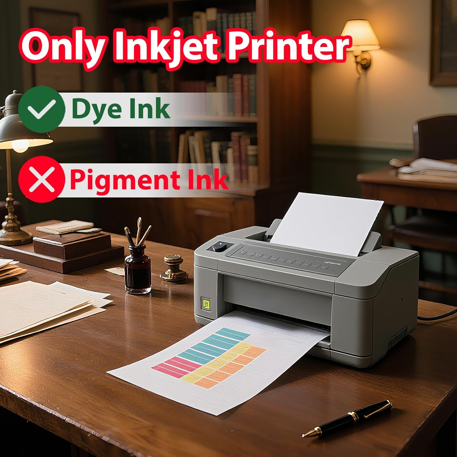 - Dye Ink Compatible & Universal Printer Fit Engineered for inkjet printers using dye-based inks; works seamlessly with HP, Canon, Epson, and other major brands for hassle-free printing.