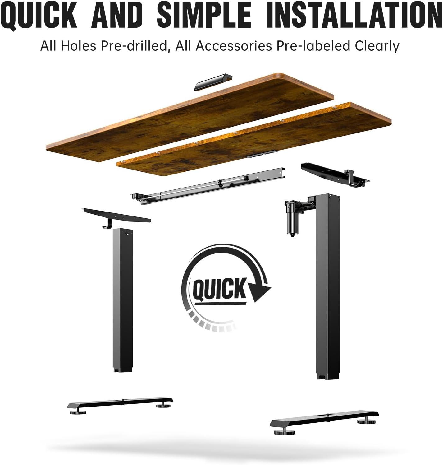 - Elevate Your Workspace: Enjoy effortless height adjustment from 28.3" to 46.5" to seamlessly transition between sitting and standing throughout your day; Kindly Note that the desktop is divided into 2 pieces, not a whole piece