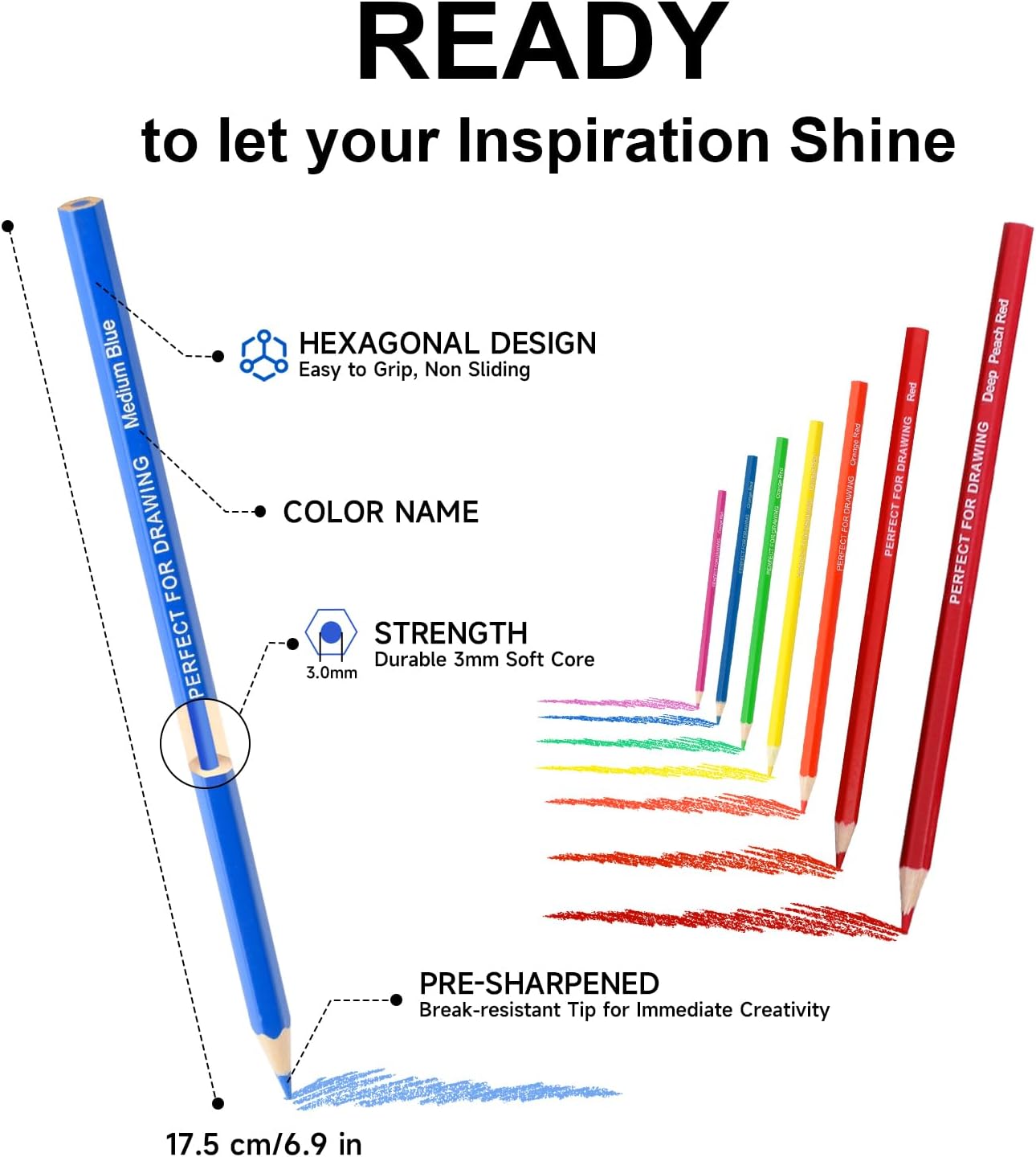 - Soft Core and Break-resistant: Coloring pencil is made of soft break-resistant core and high-quality wood. It will glide smoothly across paper and won’t chip under normal pressure. Soft enough to blend well and durable enough to be easily sharpened