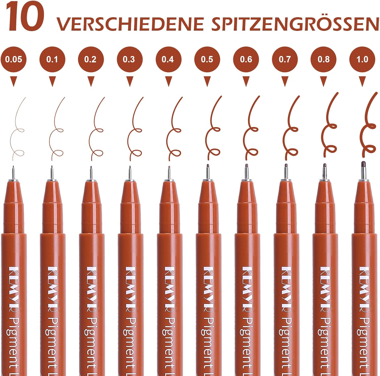 10 Micro Fine liner Drawing Art Pens Calligraphy Pens: 0.05mm-1.0mm Size Art supplies Waterproof Archival Sepia Ink Markers For Artists,Use for Professional Watercolor,Sketching