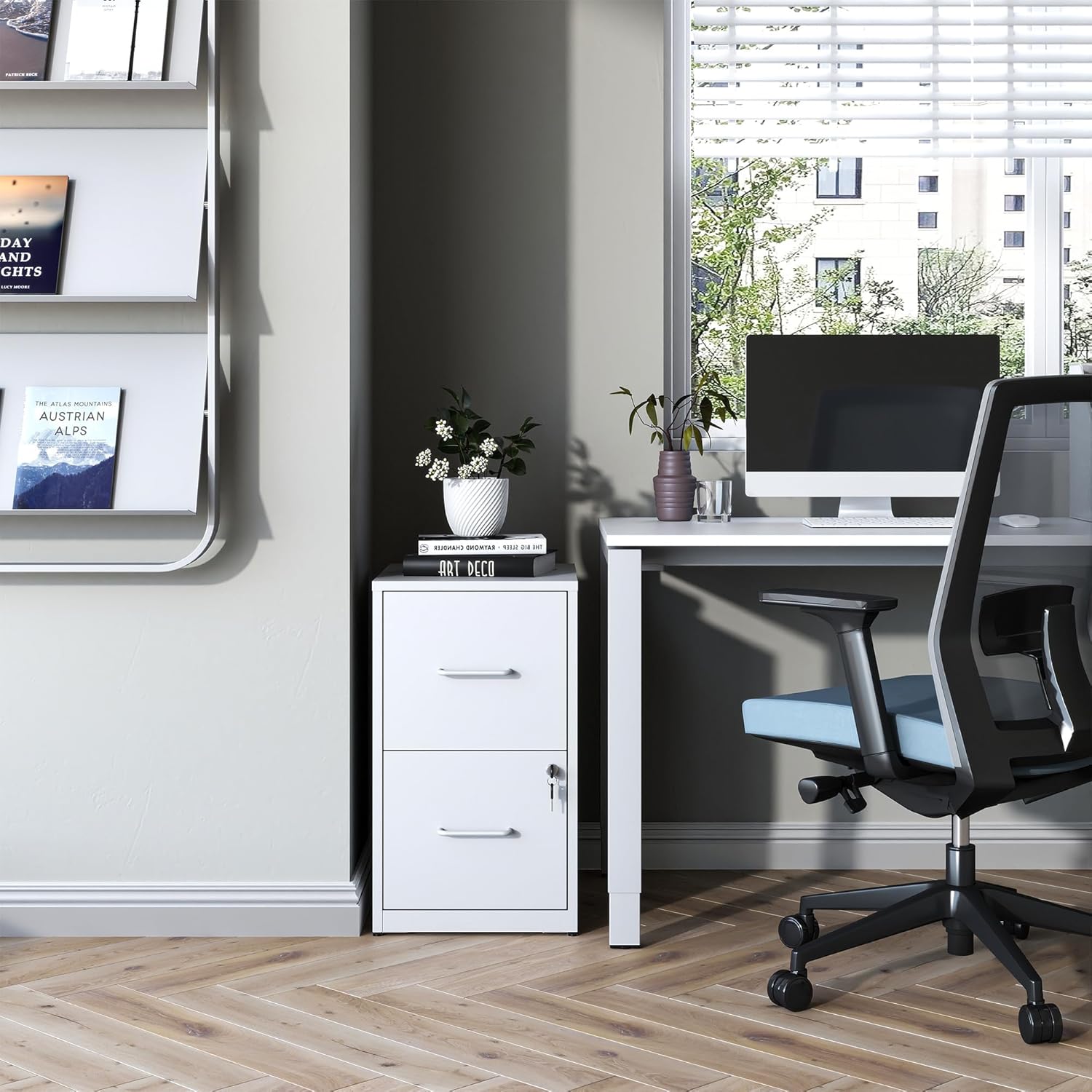 - 【Secure Lock Design】Our office filing cabinets with 2 drawers feature a locking mechanism.Equipped with 2 keys, when you leave the office, you can lock 2 drawers at once, to ensure your privacy and file security, built-in slide rail, drawer open and close smoothly, quiet, suitable for use in the office environment.