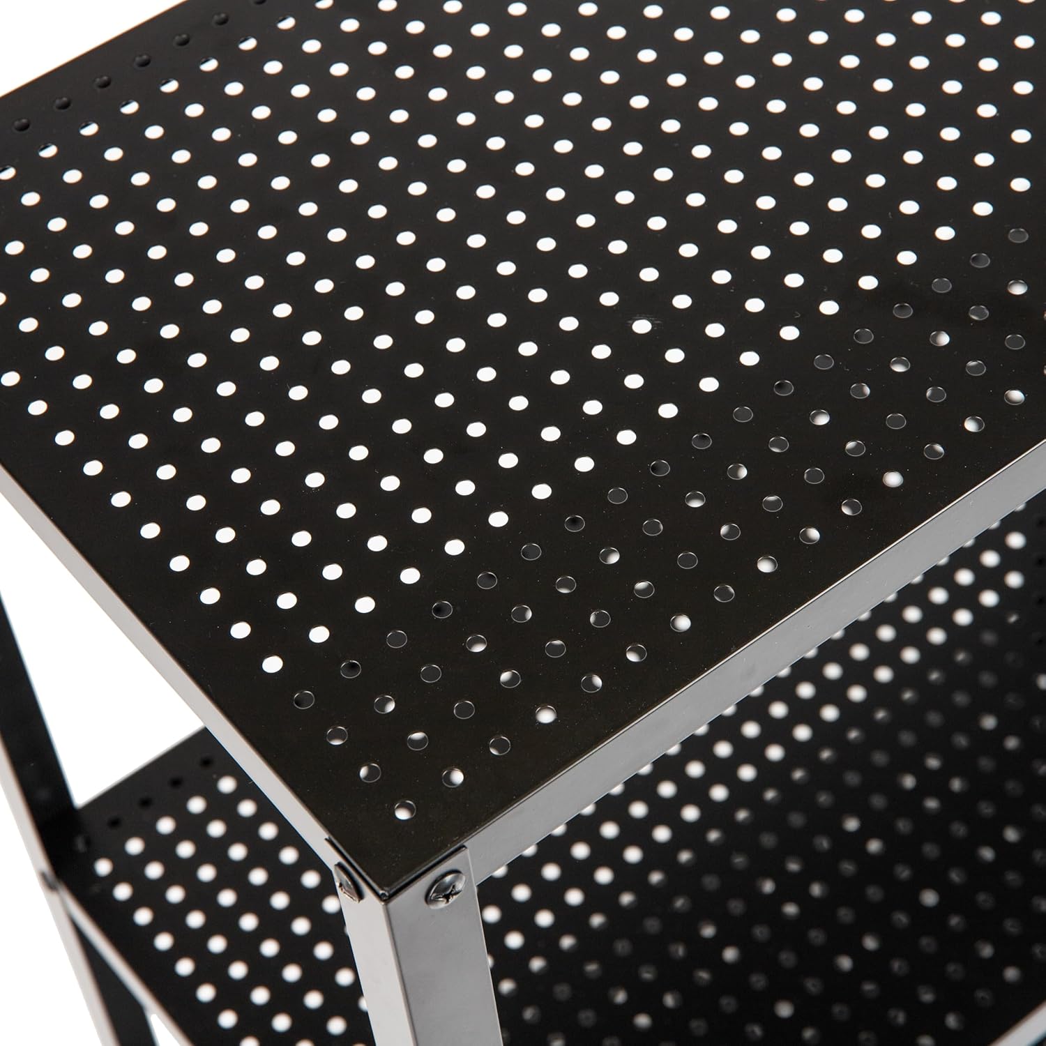 - Three-Tier Storage: This versatile cart offers three shelves with a perforated pattern that allows ventilation and drainage. Perfect for multipurpose storage or storing supplies on the go