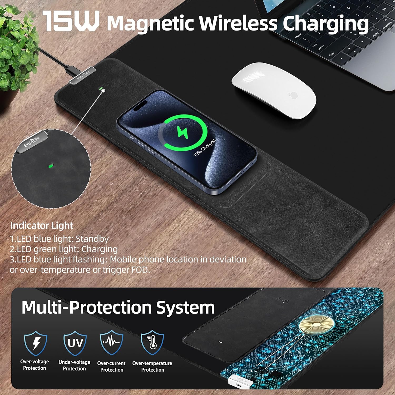Wireless Charging Mouse Pad, Gaming Mouse Pad with Ultra-Smooth Surface, 31.5”x15.75” Large Desk Mat, Non-Slip Rubber Base, Waterproof Computer Keyboard Pad for Gaming, MacBook, Laptop, Desk