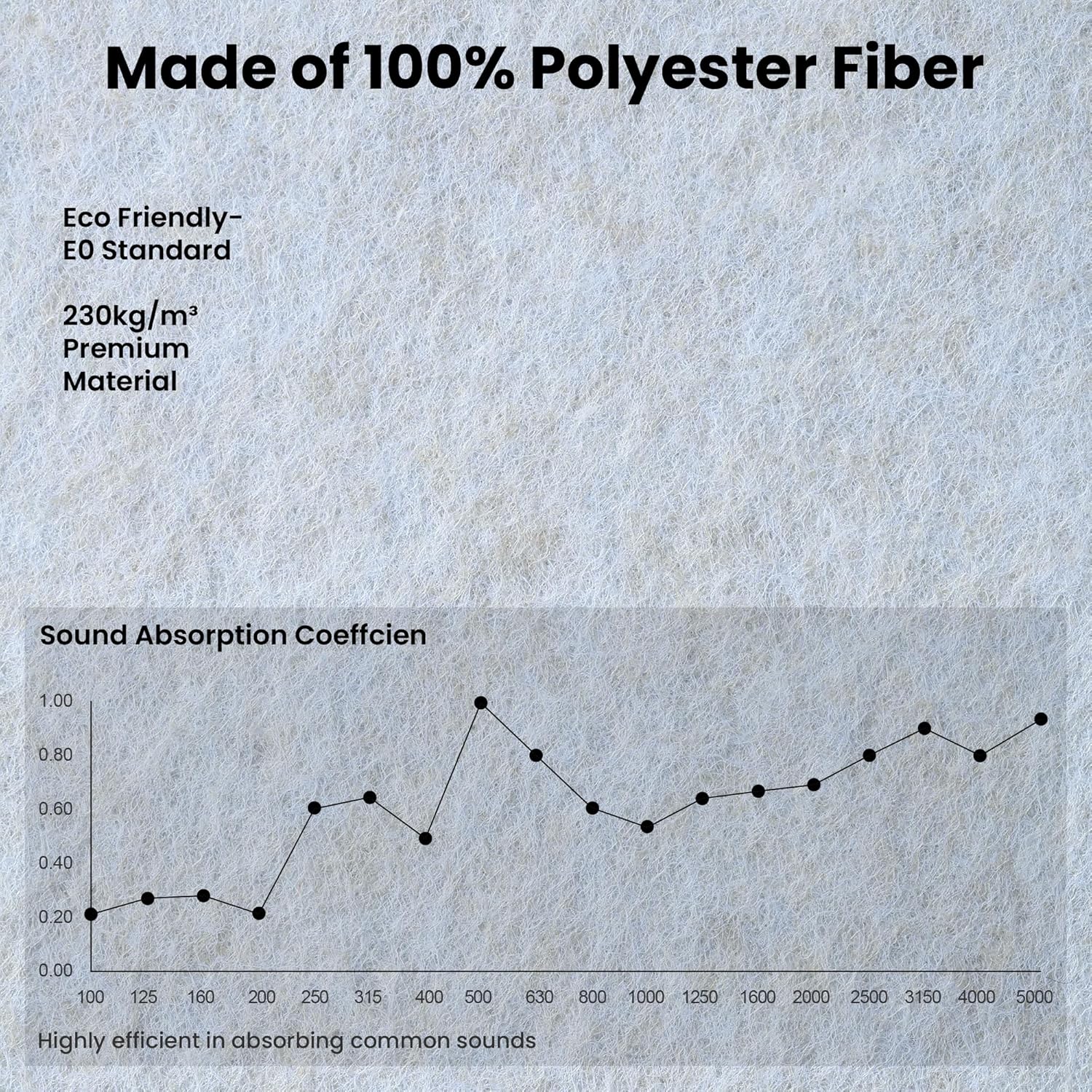 - 100% Polyester Fiber - The wall soundproofing panels is carefully made of 100% polyester fiber. Polyester fiber large acoustic panels have many advantages, such as excellent sound absorption, effective resistance to moisture and mildew, easy to cut,good stability, and has a high cost-effective.