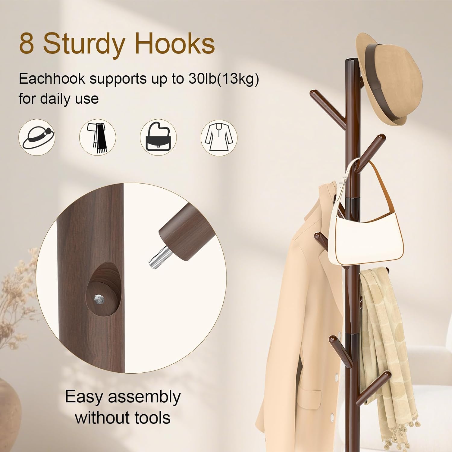 - Classic Coat Rack freestanding: Our multi-functional standing coat rack is well-designed with multiple polishing techniques and vanish treatment, which will bring you a super-smooth, sturdy and durable coat rack for your healthy life
