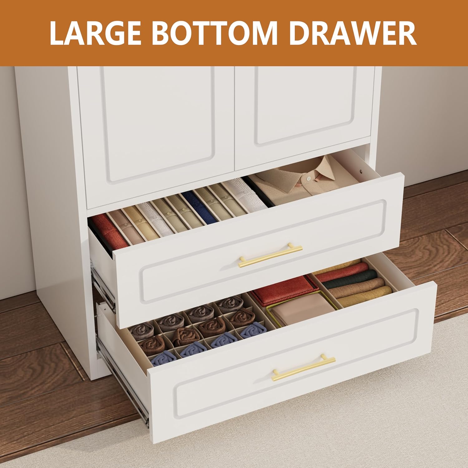 - [SAFE & PRACTICAL DESIGN] The wardrobe closet with drawers is equipped with anti-tipping devices to prevent tipping over and ensure the safety of you and your family. The adjustable leveling feet ensures that it always stands firmly