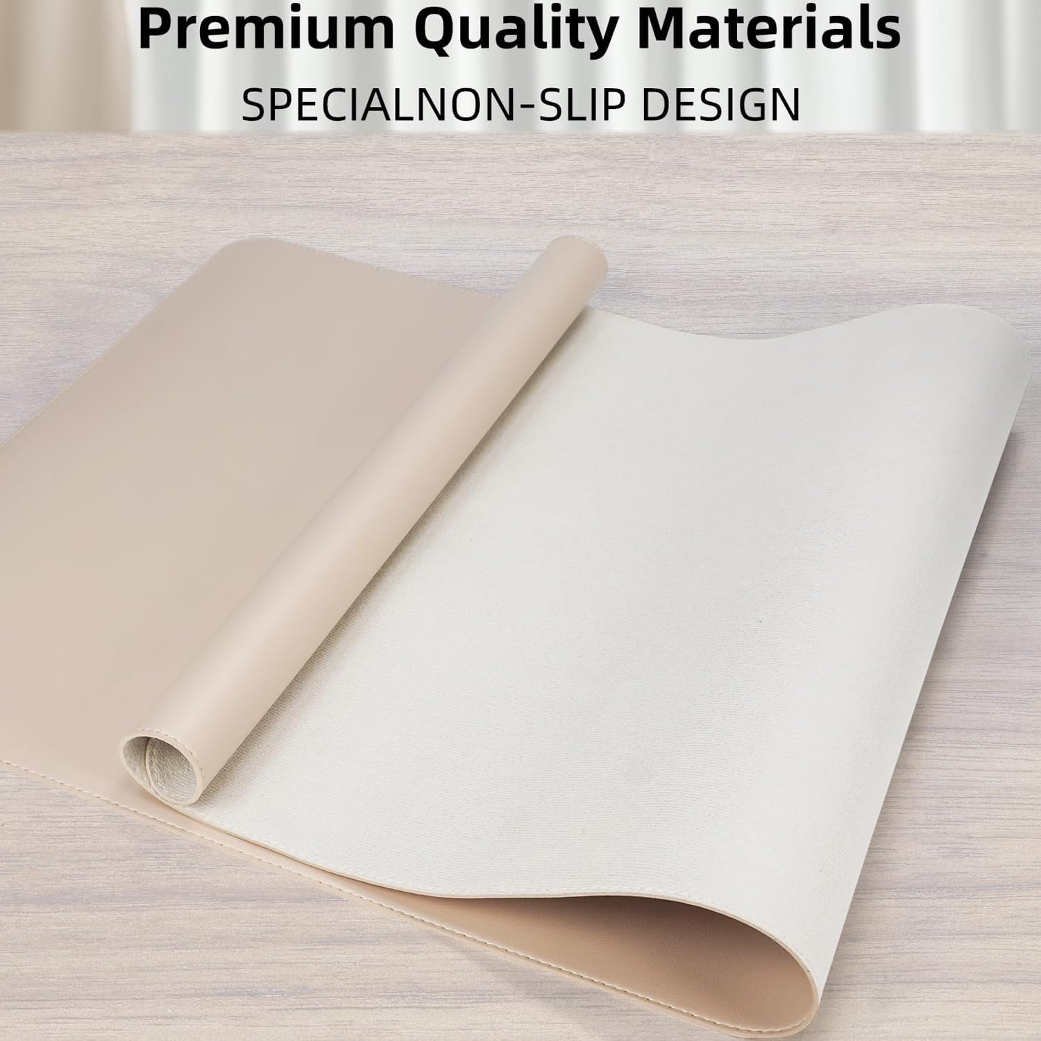 Leather Desk Pad Protector Large Mouse Pad, Stitched Locking Edge Laptop Computer Desk Mat Blotter, Non-Slip Waterproof Durable Writing Pad for Office and Home (Beige, 80 x 40cm)