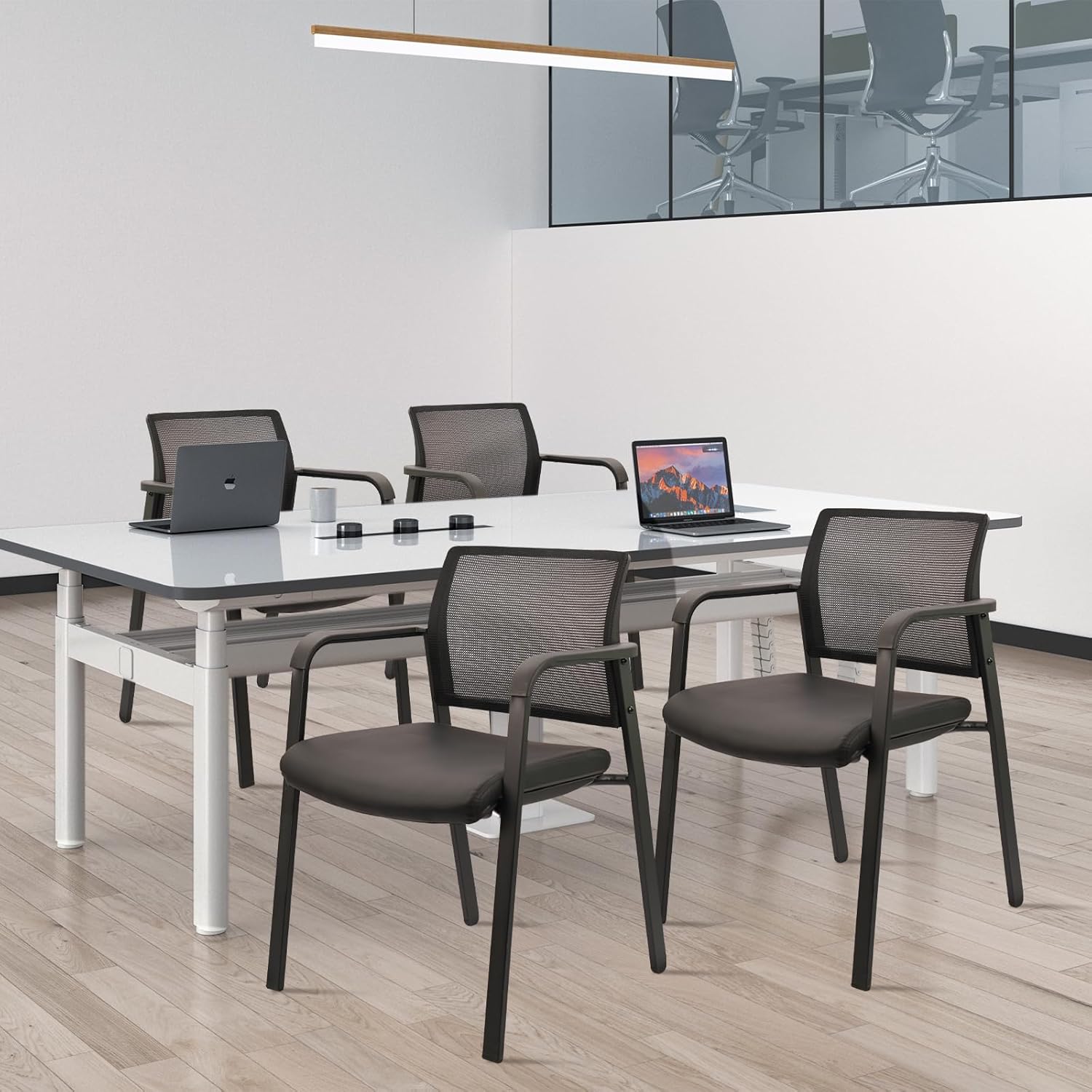 - 【CLASSIC STYLE】This meeting room chairs features a sleek black frame with smooth lines. The understated yet sophisticated design allows this conference room chair to blend seamlessly with any decor, adding a touch of elegance to your environment. Featuring non-slip feet, it prevents damage to the floor and adds stability without creating noise.