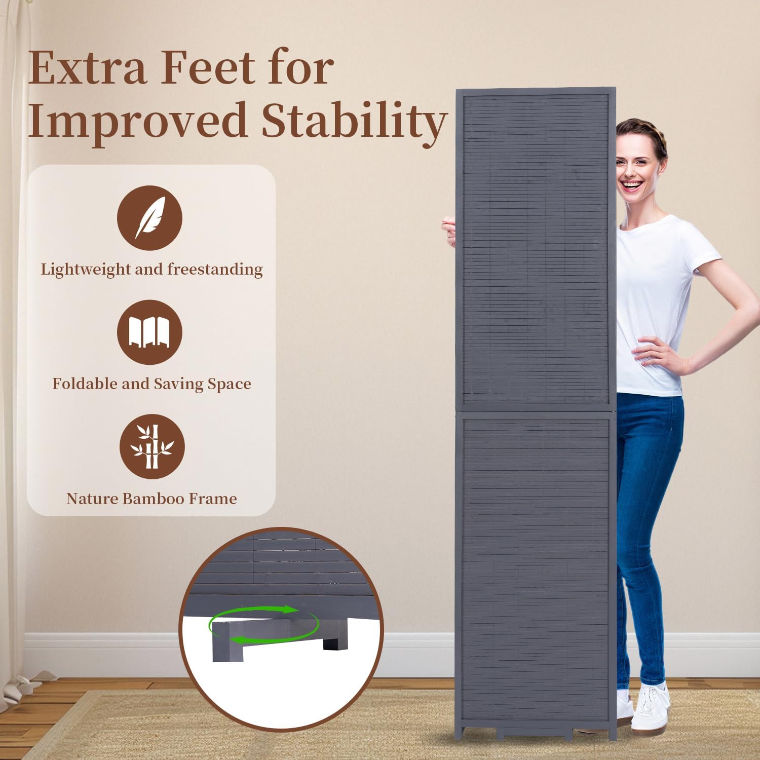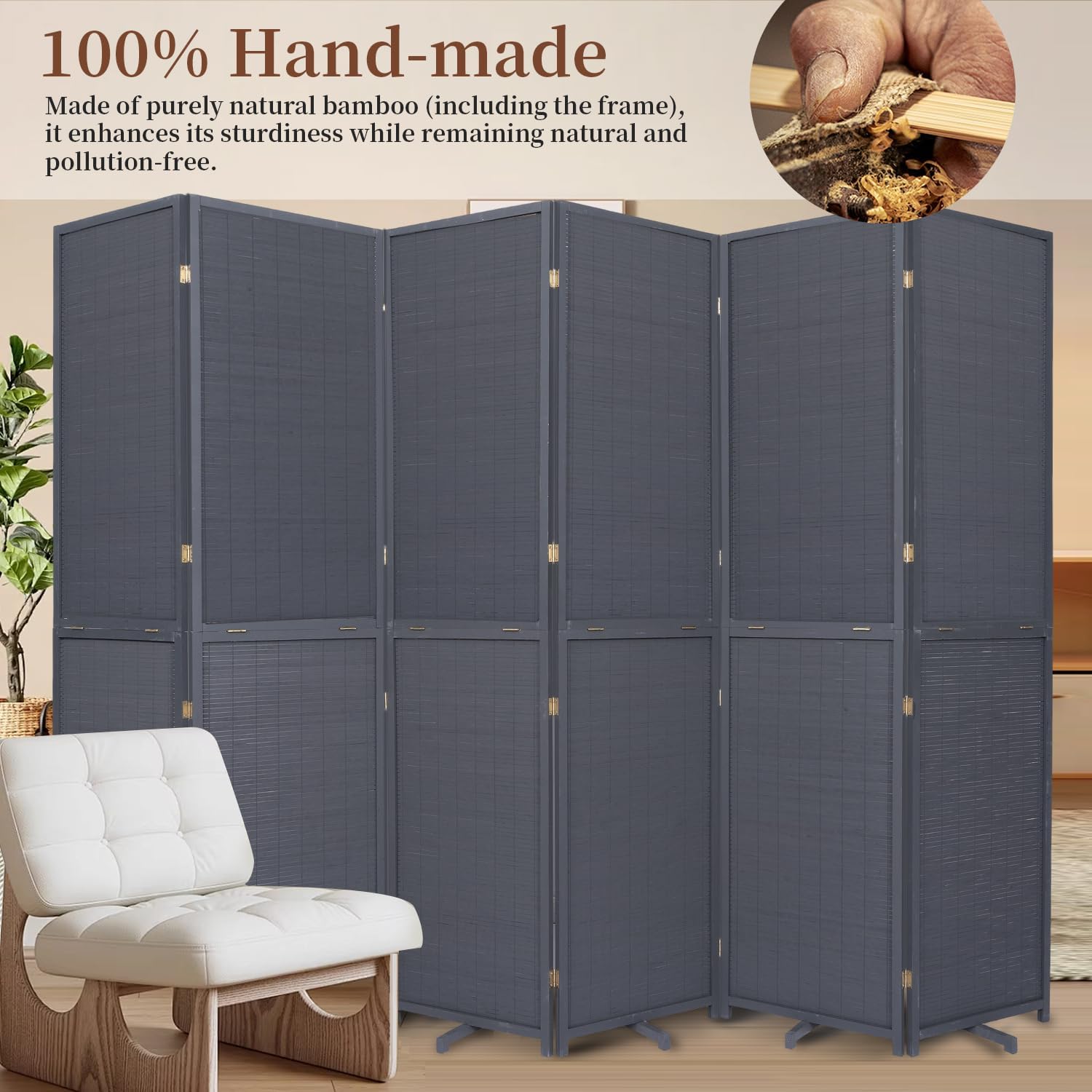 Bamboo Room Divider 6 Panel Wall Divider, 106'' W x 67'' H Folding Design with Extra Stable Base, 100% Bamboo Room Divider Screen for Room Separation, Chinese Room Partitions and Dividers Freestanding