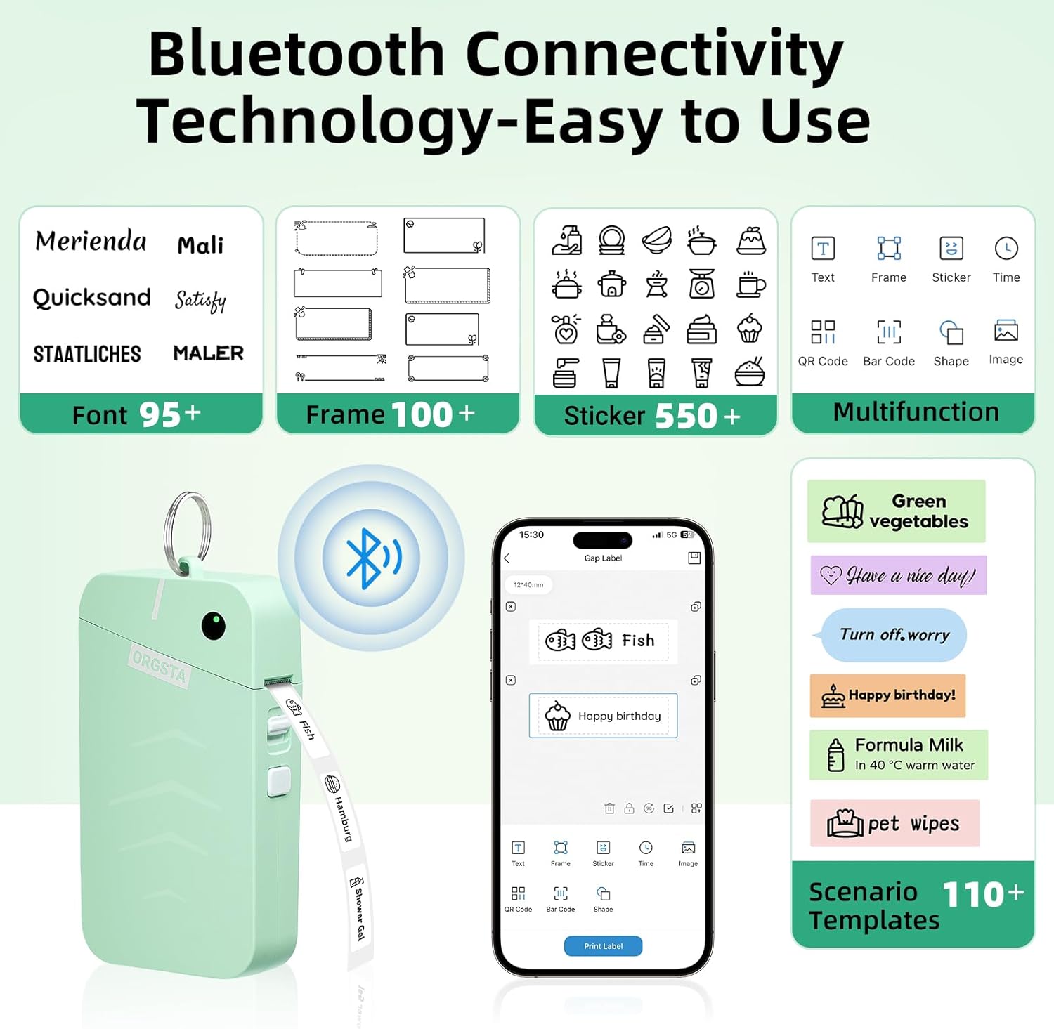 - High-Quality Printing: The ORGSTA label maker utilizes direct thermal printing technology and offers 203 DPI high-resolution printing, enjoy high-definition printing without the need for ink or toner; Laminated labels are clear, waterproof, oil-proof, scratch-resistant, and easy to tear, leaving no residue after removal