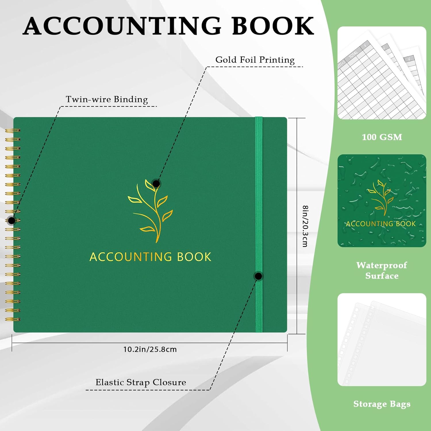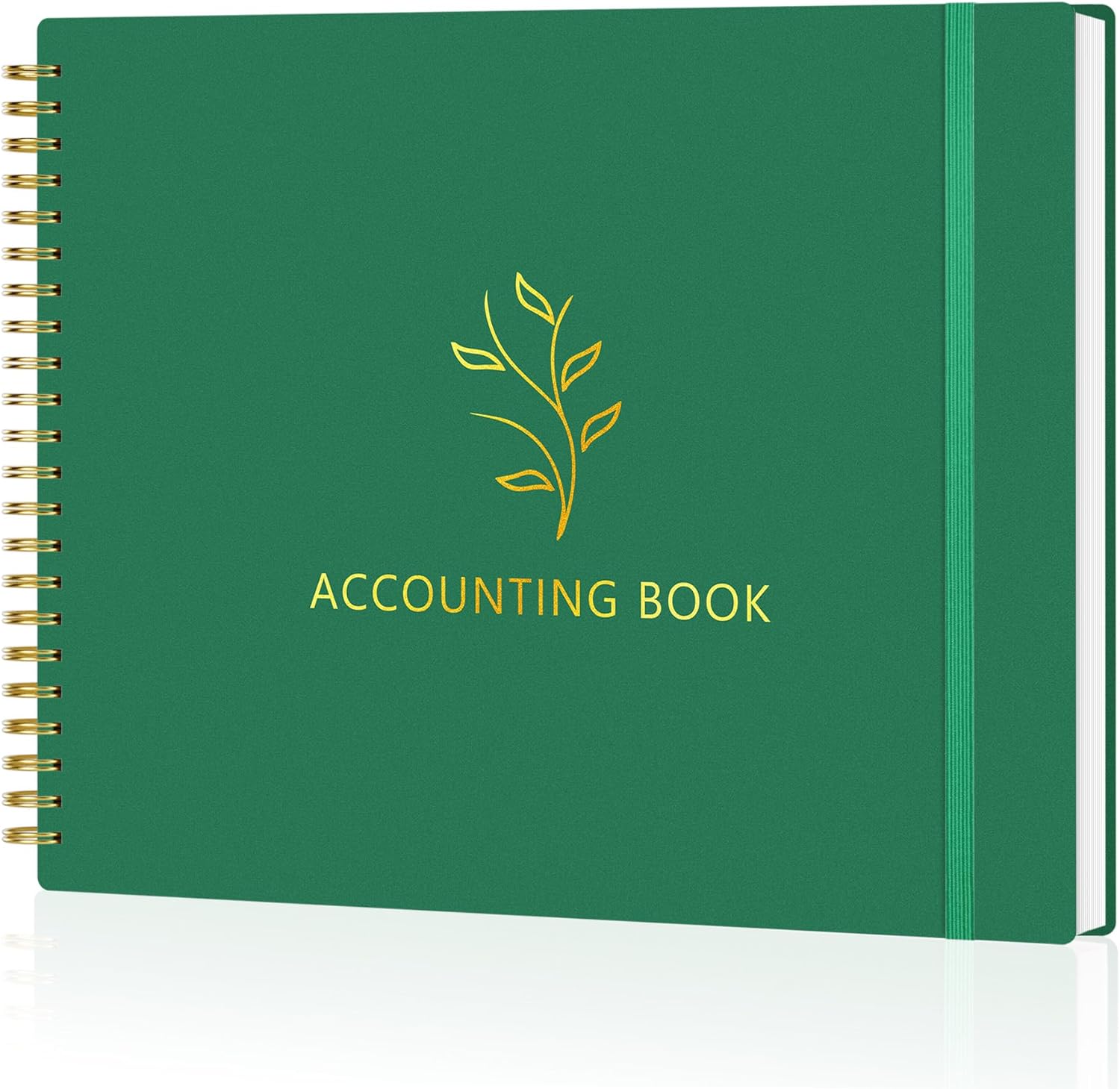 Accounting Ledger Book for Small Business & Personal Use, Horizontal Expense Tracker Notebook Ledger Book for Bookkeeping, Financial Income and Expense Log Book 10.2" x 8", Dark Green