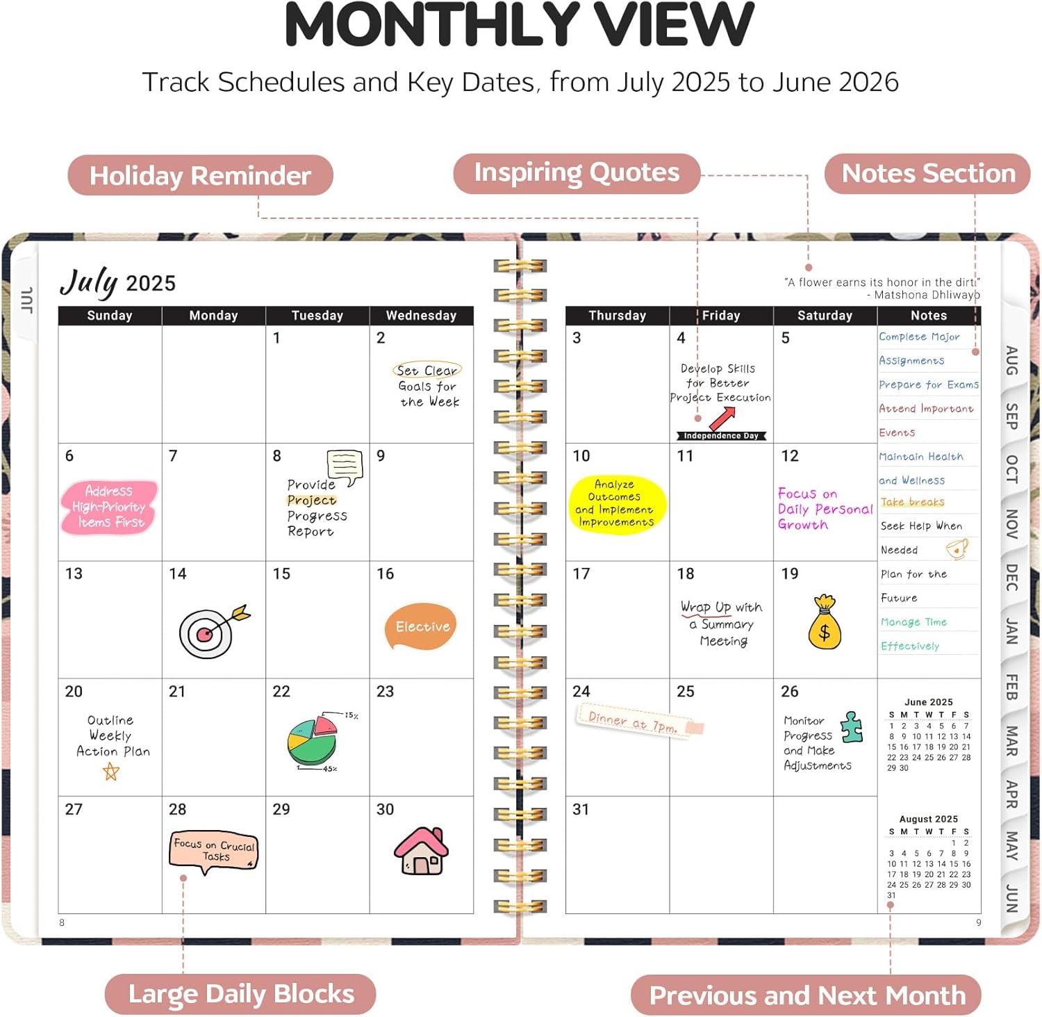 - Comprehensive Planning:The planner covers the school year from July 2025 to June 2026, offering 12 months of planning. Monthly and weekly calendar pages provide ample room to manage your schedule, set goals, and track progress.