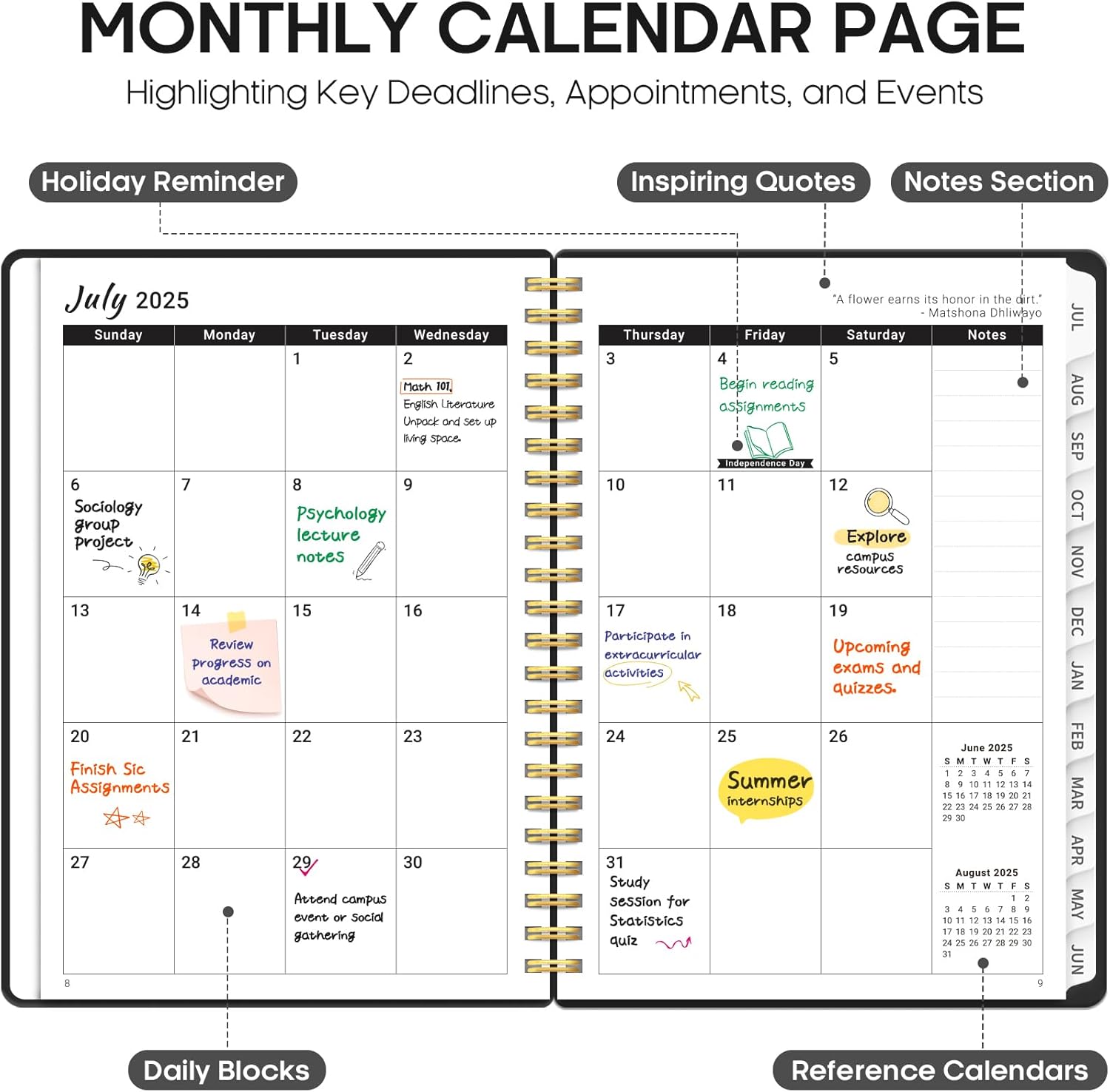 Planner 2025-2026, Academic Year Weekly and Monthly Calender Planner, July 2025 - June 2026, Spiral Bound School Planning Tool, Perfect for Teacher, Student, Women & Men - A5 (6.3" x 8.5"), Black