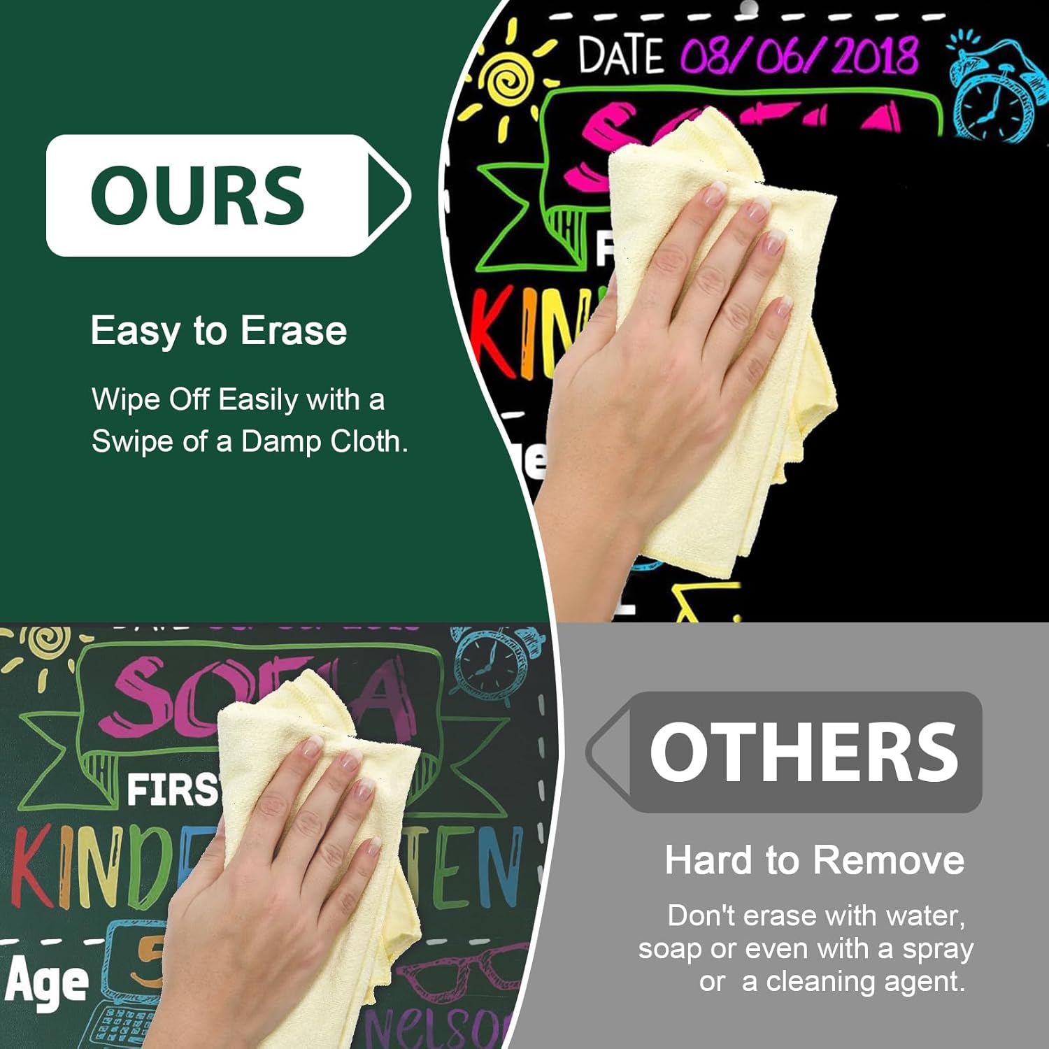 - Easy to Clean. These erasable chalk markers can be wiped off easily with a paper towel or damp cloth when writing on nonporous surface.
