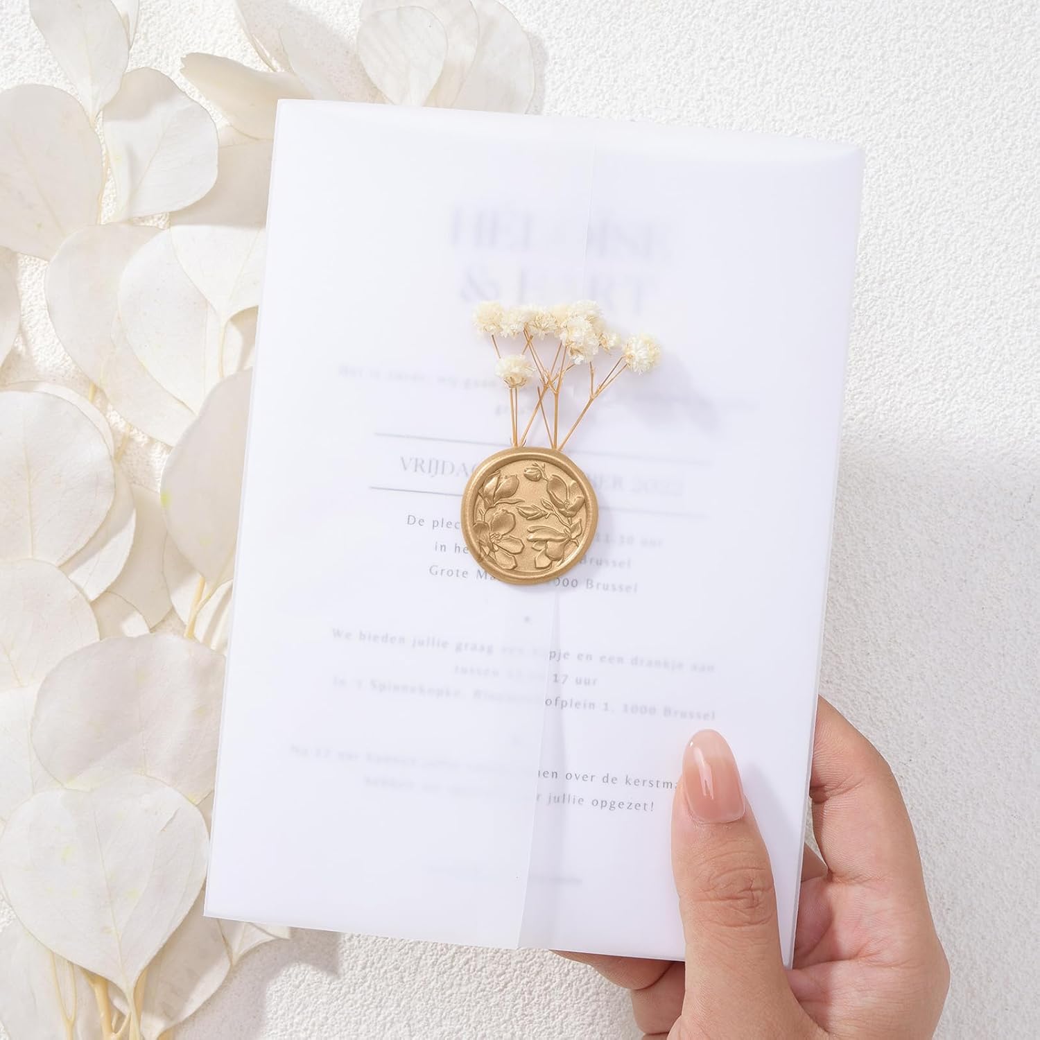 - PACKAGE INCLUDES - You will receive 60 pieces of light gold color wax seal stickers, (20 stickers per design) - Magnolia & Eucalyptus & Olive Branch. The wax seal sticker diameter is 1.2 inches/30mm and with almost the same size of adhesive on the back. Weighs 0.02oz per seal and may add weight to envelopes.