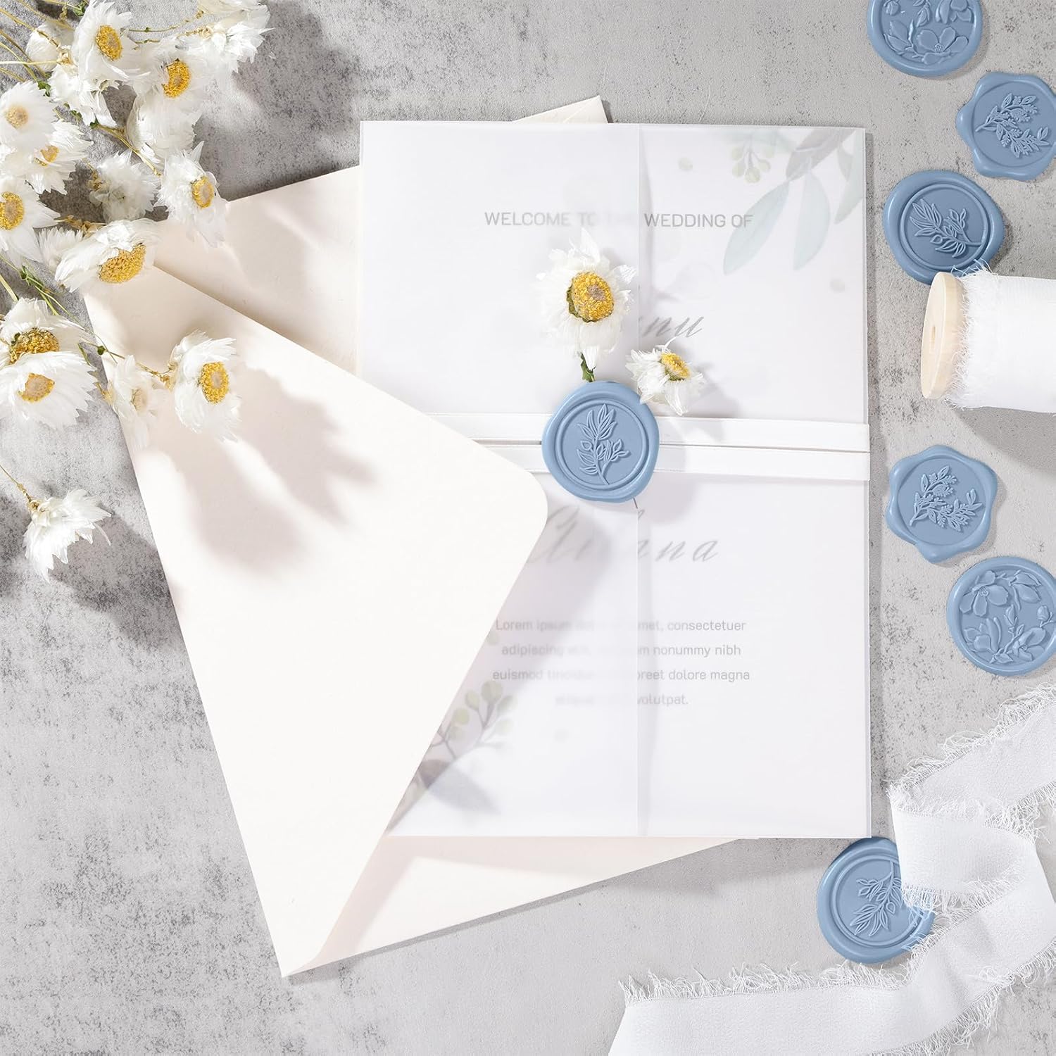 - PACKAGE INCLUDES - You will receive 60 pieces of dusty blue color wax seal stickers, (20 stickers per design) - Magnolia & Eucalyptus & Olive Branch. The wax seal sticker diameter is 1.2 inches/30mm and with almost the same size of adhesive on the back. Weighs 0.02oz per seal and may add weight to envelopes.