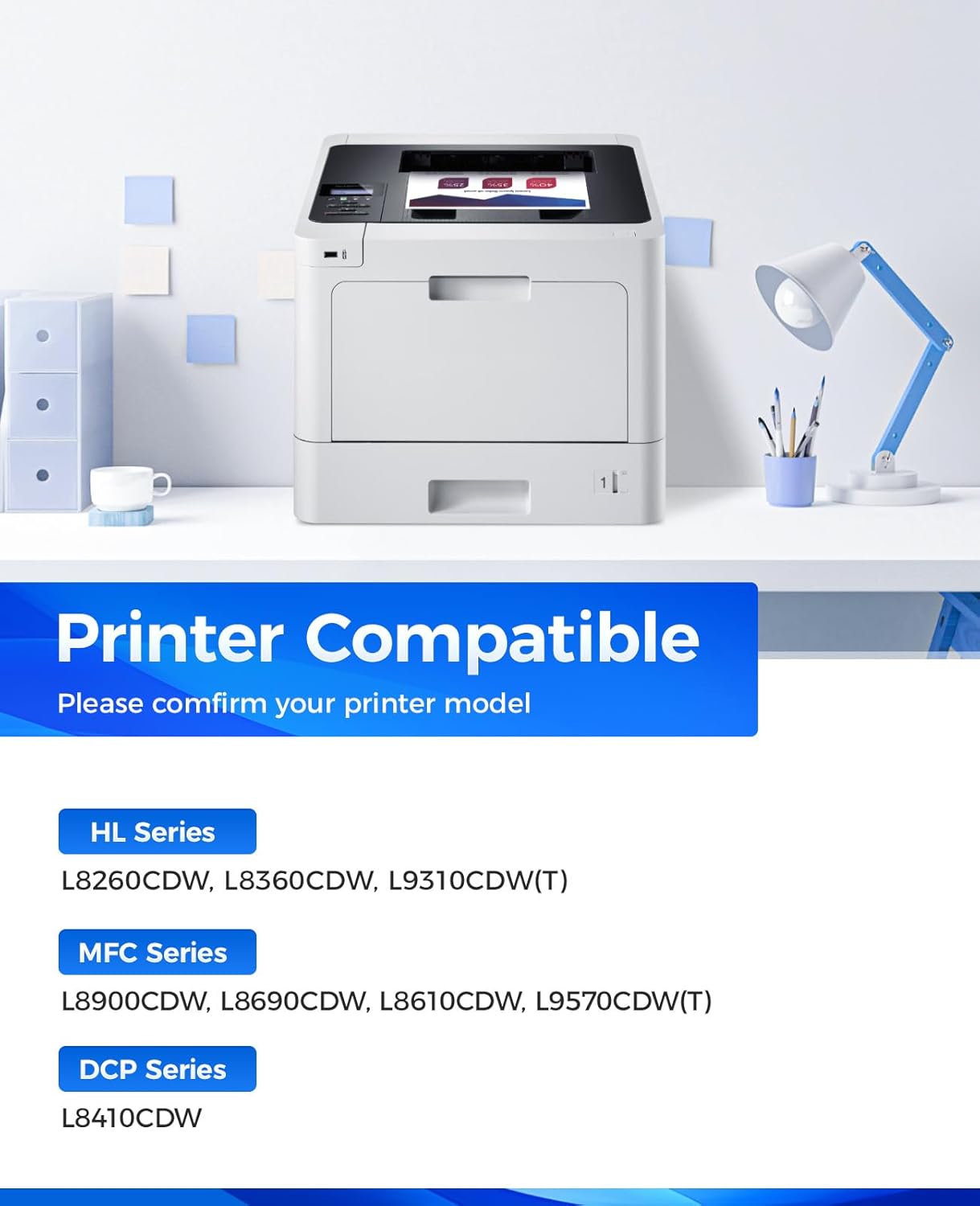 - Compatible Printer: Compatible with Brother HL Series:HL-L8360CDW HL-L8260CDW HL-L9310CDW(T), MFC Series:MFC-L8690CDW MFC-L8610CDW MFC-L8900CDW MFC-L9570CDW(T), DCP Series:DCP-L8410CDW Laser Printer.