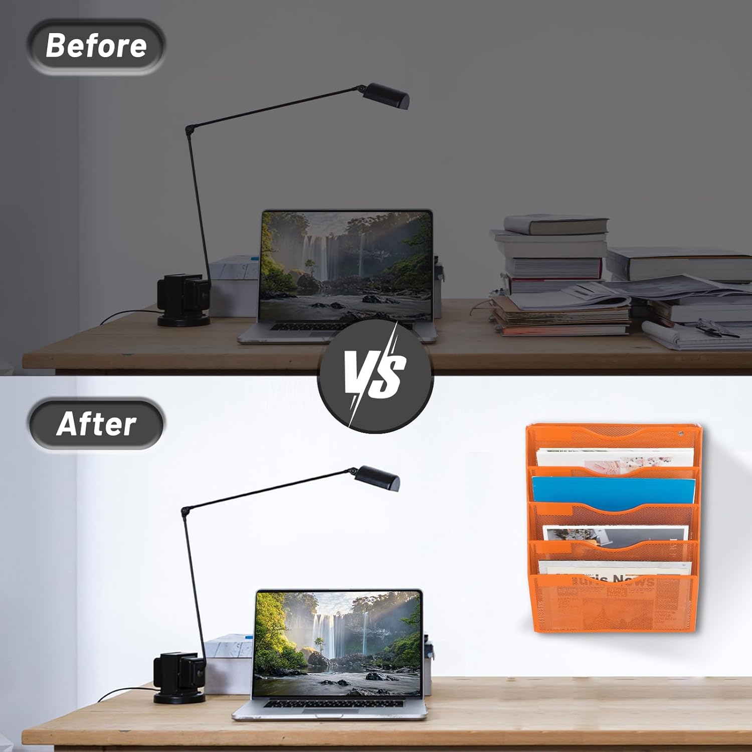 EASEPRES 5 Pocket Mesh Hanging Wall File Organizer, Wall Mounted Mail Paper Document Folder Holder, Clipboard Storage Organization Magazine Rack with Nametag Label for Office Home School, Orange