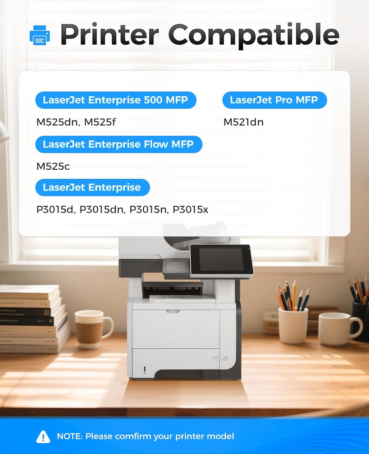 - Compatible Printers: Compatible with HP LaserJet Enterprise 500 MFP M525dn M525f, LaserJet Enterprise Flow MFP M525c, LaserJet Enterprise P3015d P3015dn P3015n P3015x, LaserJet Pro MFP M521dn Printer.