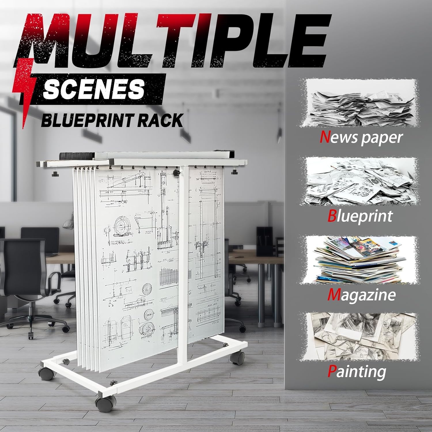 - Multiple Scenarios: Blueprint rack is suitable for diverse scenarios such as homes, schools and offices, and can effectively meet your needs for displaying and organizing blueprints, documents, posters, architectural drawings, maps, and so on