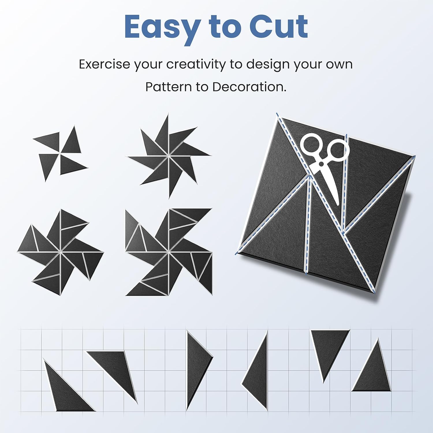 - 【Perfect for wall decoration】Be different from other acoustic panels,We have not only upgraded their acoustic performance,but aslo their appearance.Adopt beveled edge and multi-line design.They can be DIY into pinwheel patterns and multi-ring patterns.They absorb unnecessary sound while playing a good role in decorating the wall.Perfect for professional studios, video blogger,game room, podcasting, school,home theaters,offices,etc