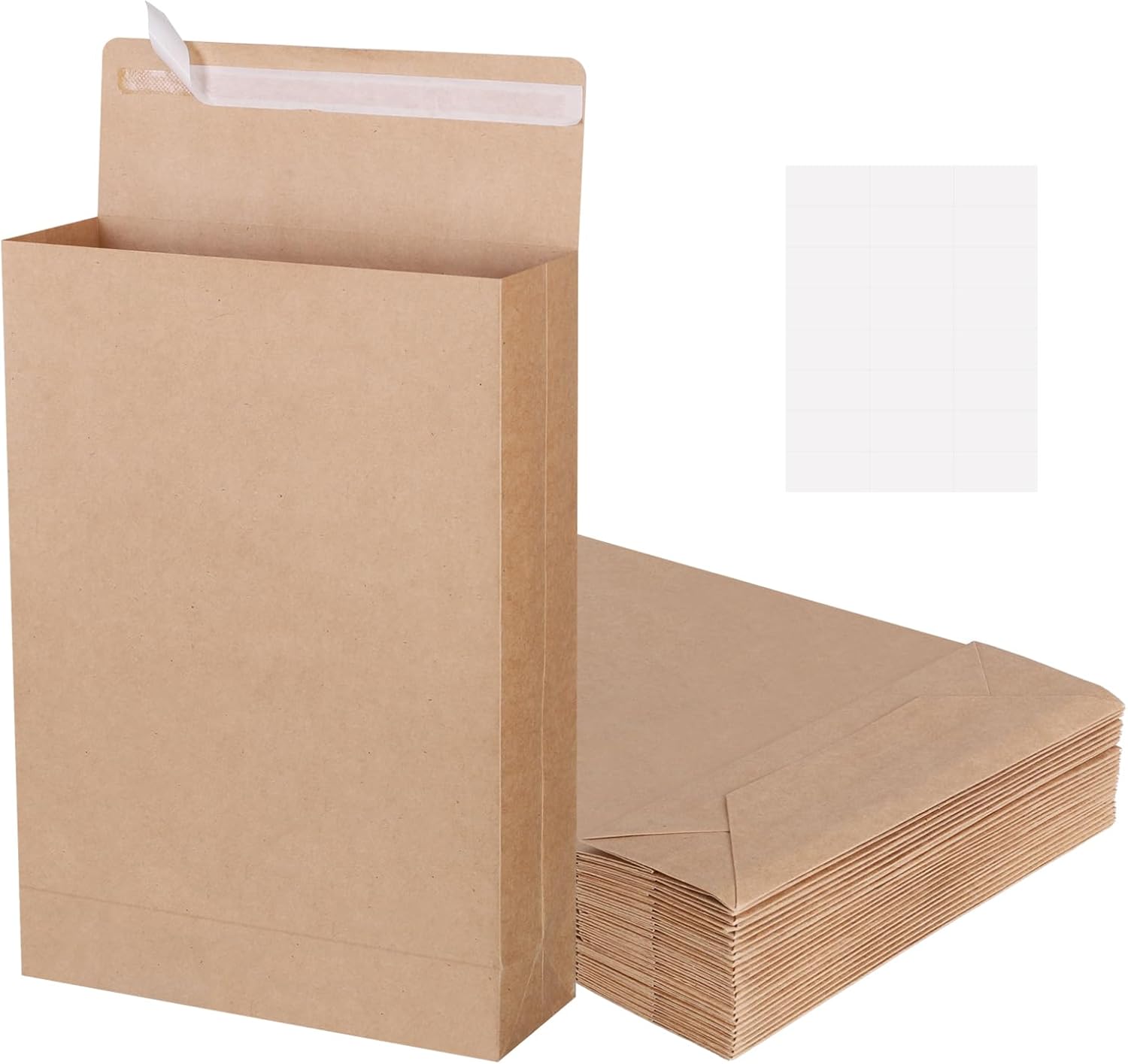 - Package includes: 25 Pack 9.4" x 13.2" kraft expandable envelopes for storage, organization, and mailing. Extra with small self-adhesive labels (24 labels per sheet, total 48 pcs)