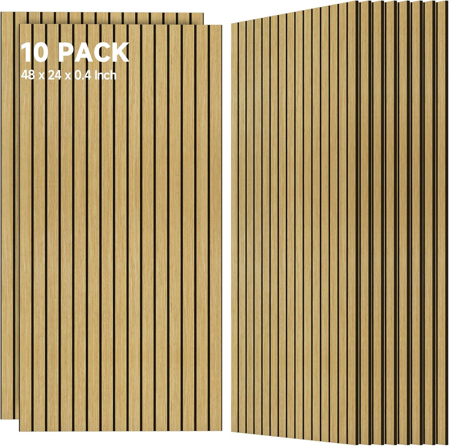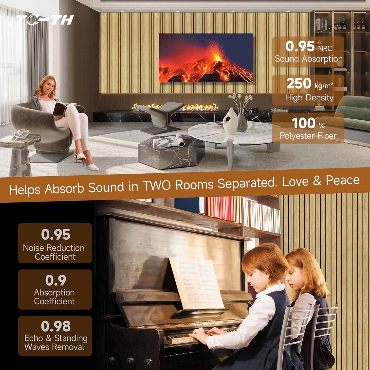 TO-TH 10 Pack Wall Tiles, 47.2” x 23.6” Sound Proof Panels for Walls, Art Wall Panels for Echo Absorption,Acoustical Barrier of Wood-Look Polyester Fiber for Home Office & Studio