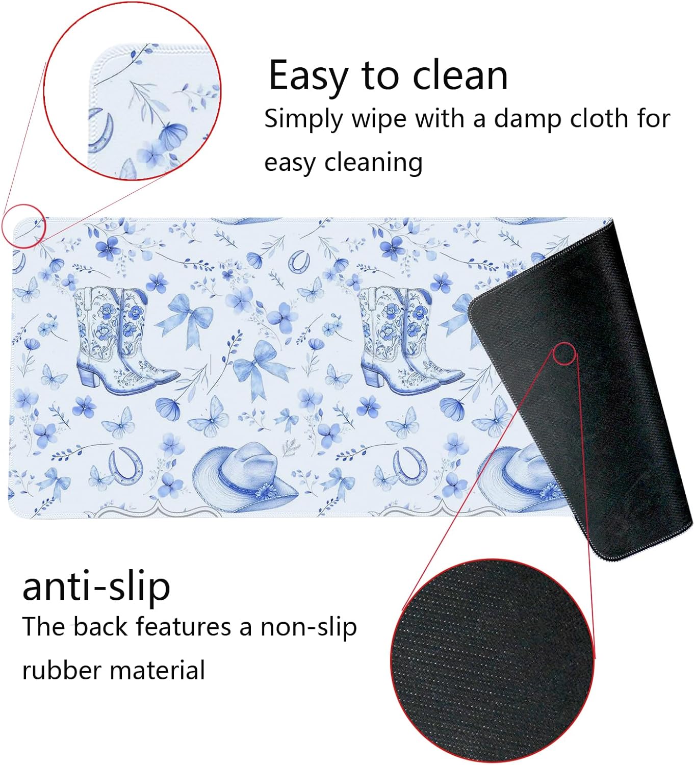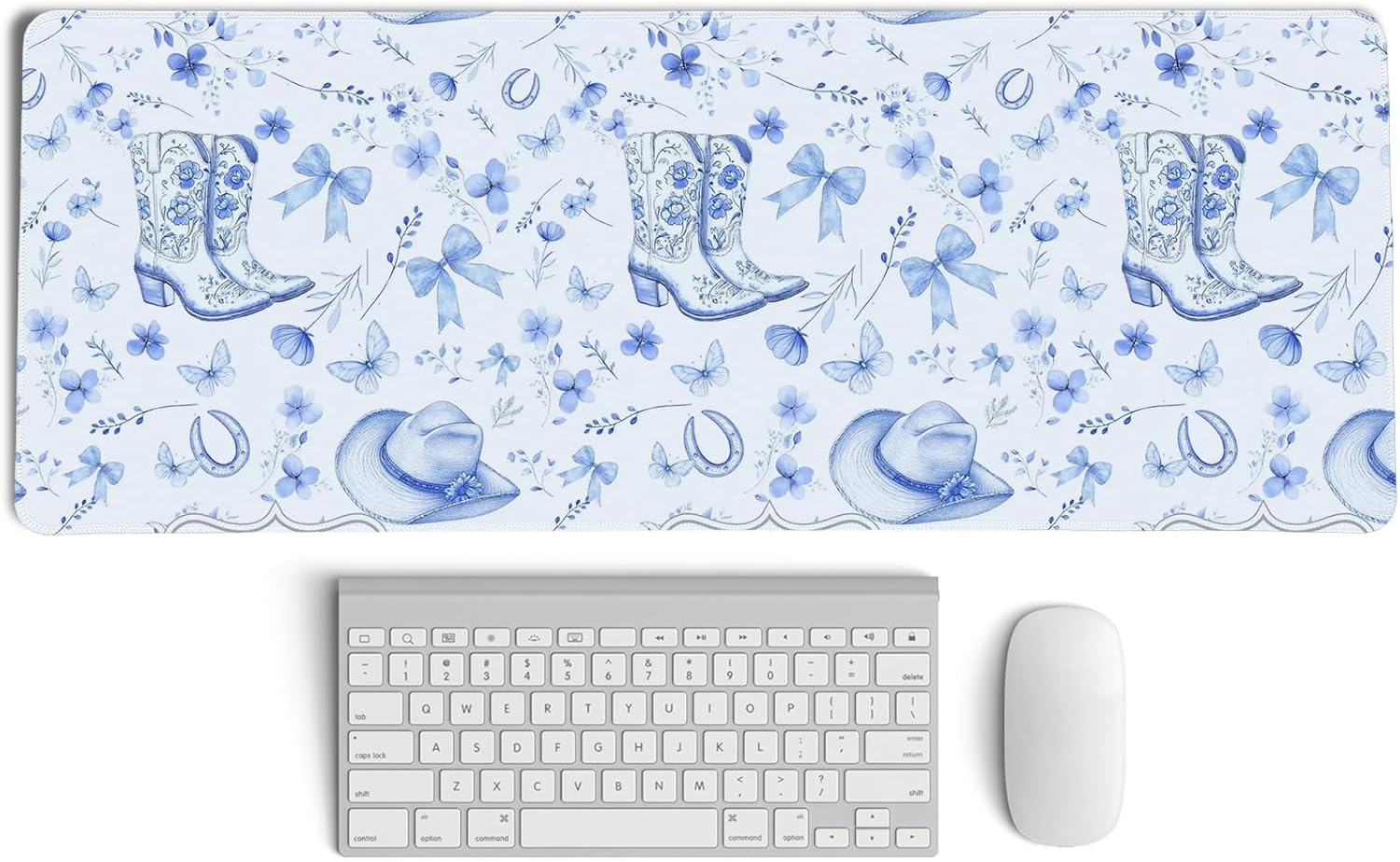 - 【Stylish appearance Designs】We choose the beautiful and fashionable blue bow boot cowgirl pattern, and use excellent printing technology to ensure bright colors. This is a great decoration for your Home Office desk and Dorm table mat, which can add some personality to your workplace and home.