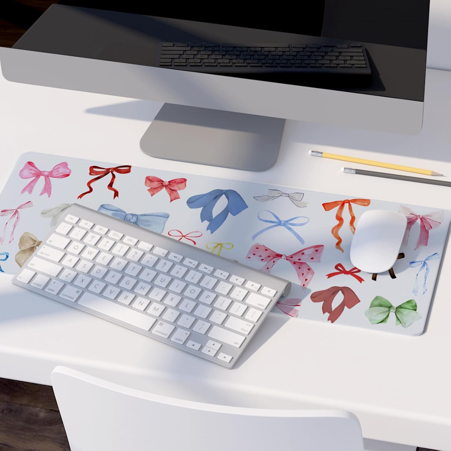 Kawaii Bow Mouse Pad, Girly Coquette Bow XL Large Mouse Pad, Girls Preppy Trendy Laptop Desk Mat for Girly Room Dorm Home Office, Colorful Bows Gifts for Teen Girls,31.5x11.8