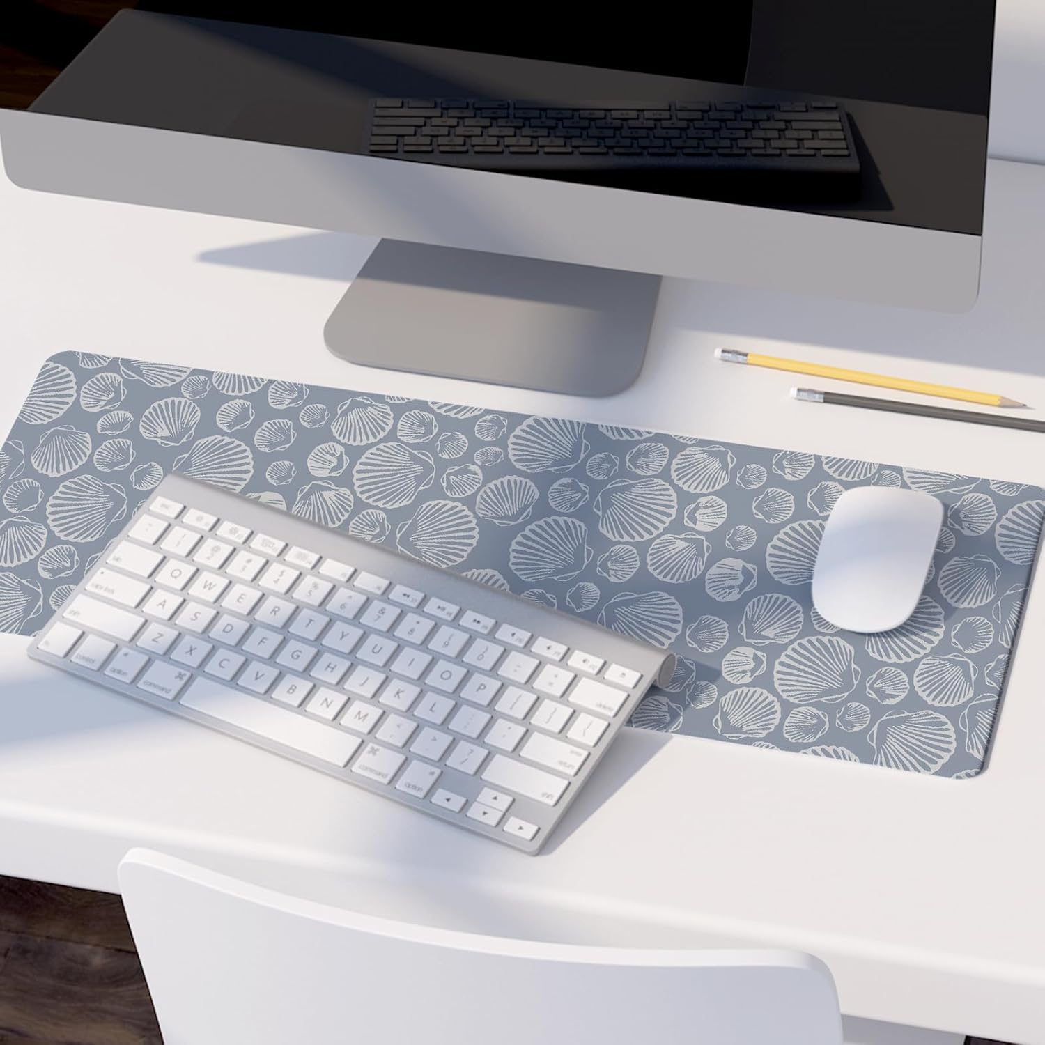 Seashell Mouse Pad,Coastal Beach Mouse Pad,XL Large Ocean Beach Seashell Desk Mat,Girly Summer Beachy Gaming Computer Pads,Girly Laptop Desk Mat,Summer Beachy Desktop Decor Art,31.5x11.8 Inch