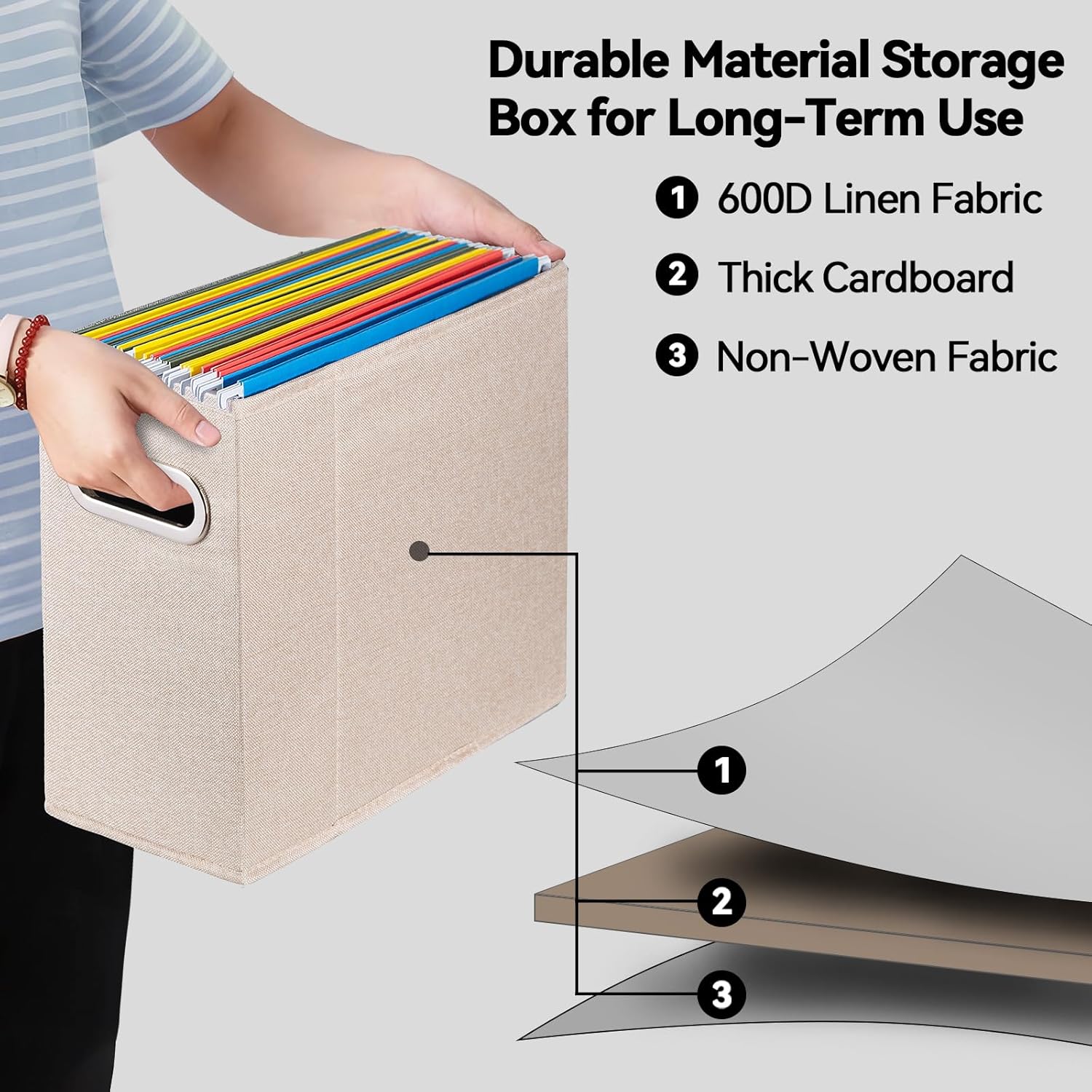 4 Packs Letter Size File Organizer, File Folders Organizer, Fabric Storage Box, Collapsible Paper Organizer with Metal Handle, Smooth PVC Rails, Only Box (Beige)