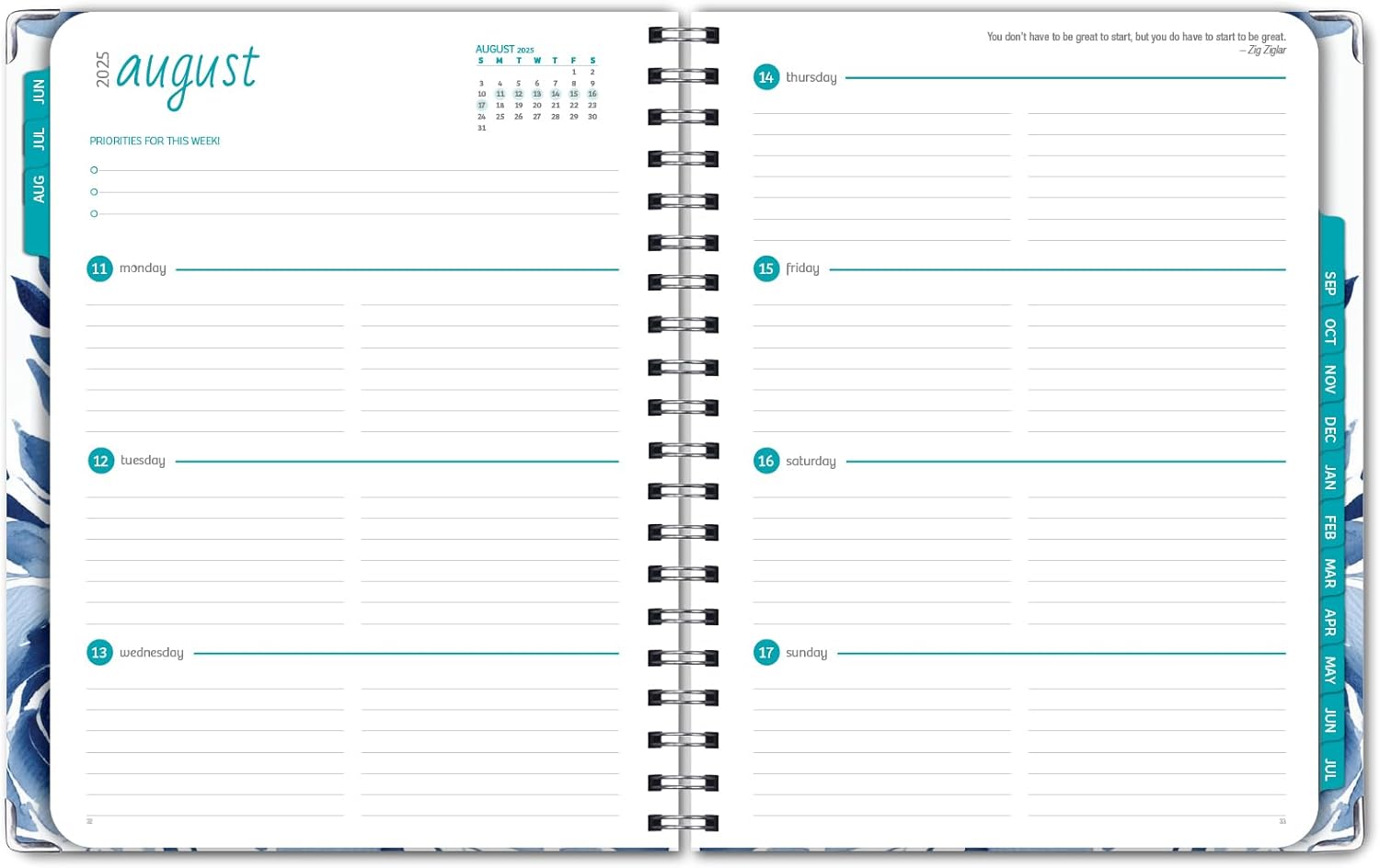 HARDCOVER Academic Year 2025-2026 Planner: (June 2025 Through July 2026) 8.5"x11" Daily Weekly Monthly Planner Yearly Agenda. Bookmark, Pocket Folder and Sticky Note Set (Blue Bloom)