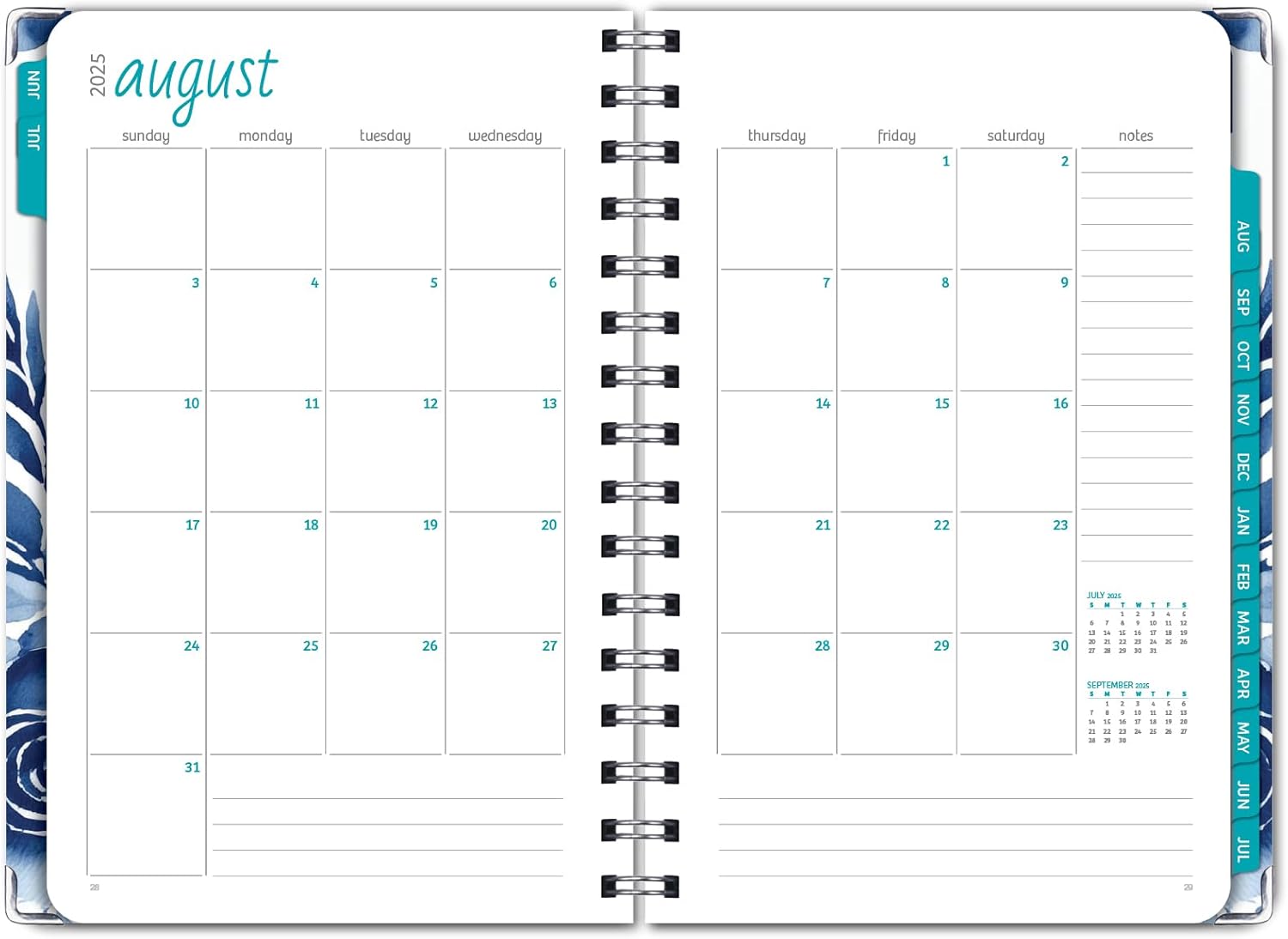 HARDCOVER Academic Year 2025-2026 Planner: (June 2025 Through July 2026) 5.5"x8" Daily Weekly Monthly Planner Yearly Agenda. Bookmark, Pocket Folder and Sticky Note Set (Blue Bloom)