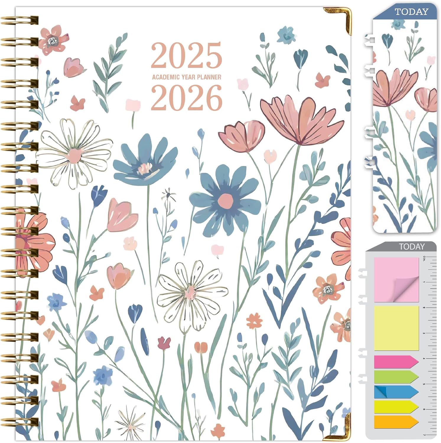 HARDCOVER Academic Year 2025-2026 Planner: (June 2025 Through July 2026) 8.5"x11" Daily Weekly Monthly Planner Yearly Agenda. Bookmark, Pocket Folder and Sticky Note Set (Colorful Botanicals)