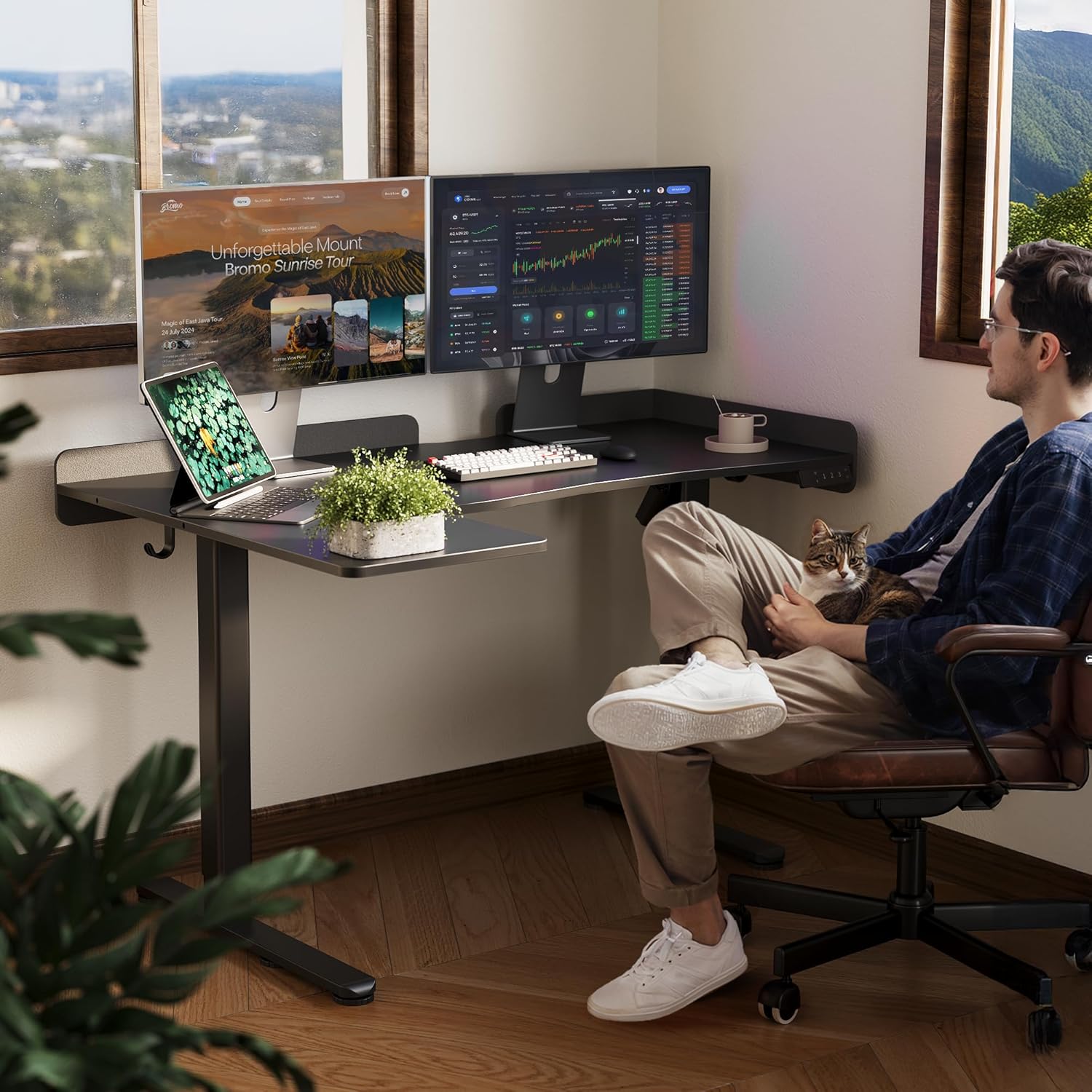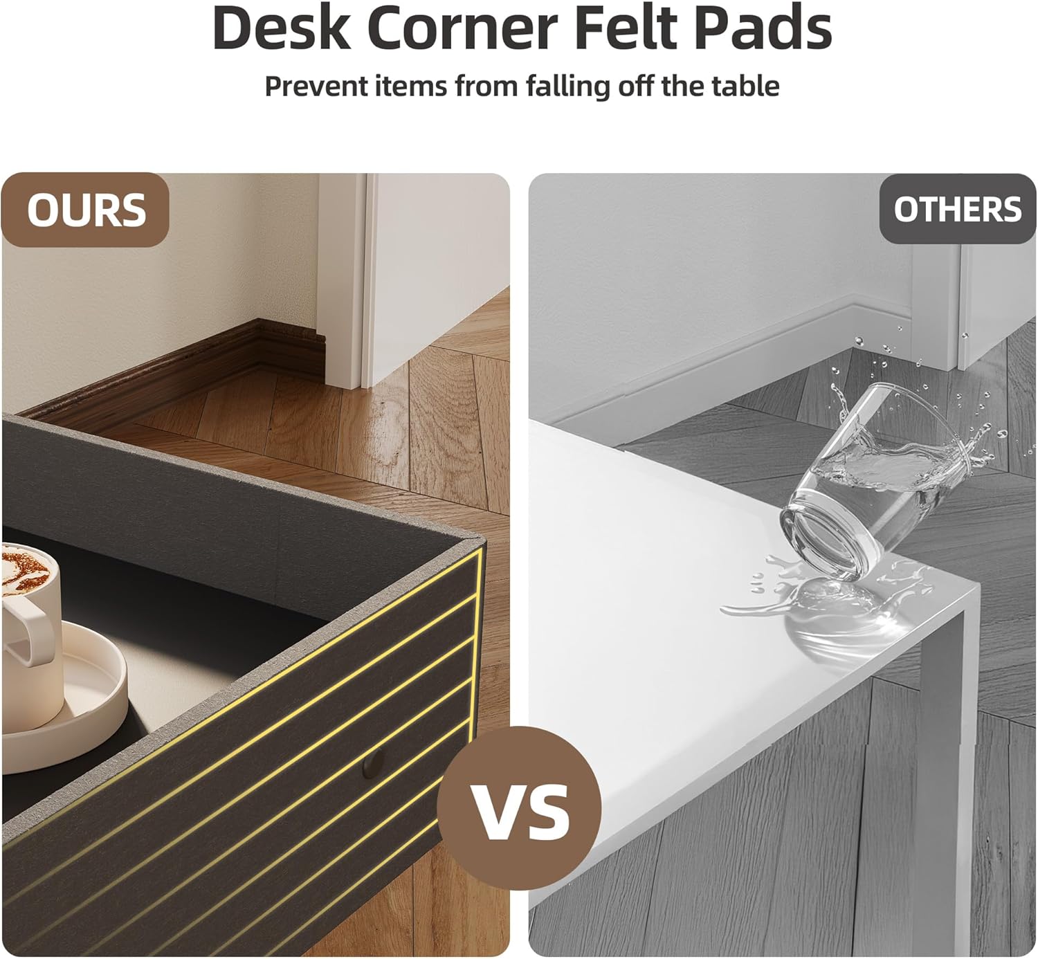 - Multifunction Corner Desk: This L-shaped standing desk design is suited for corners and can be an effective space-saver. The felt-padded design at the table edge can prevent items from falling off