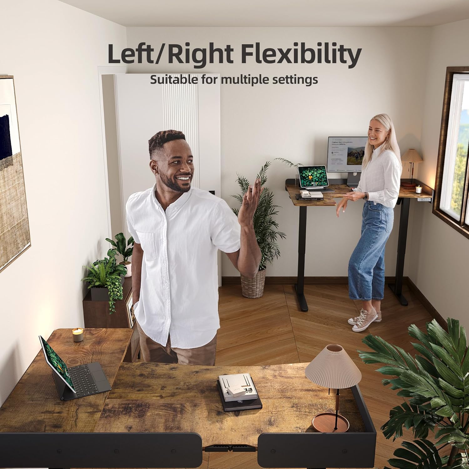 Claiks L Shaped Standing Desk, 55 Inch Electric Height Adjustable Desk Left Facing Corner Workstation with Splice Board, Rustic Brown
