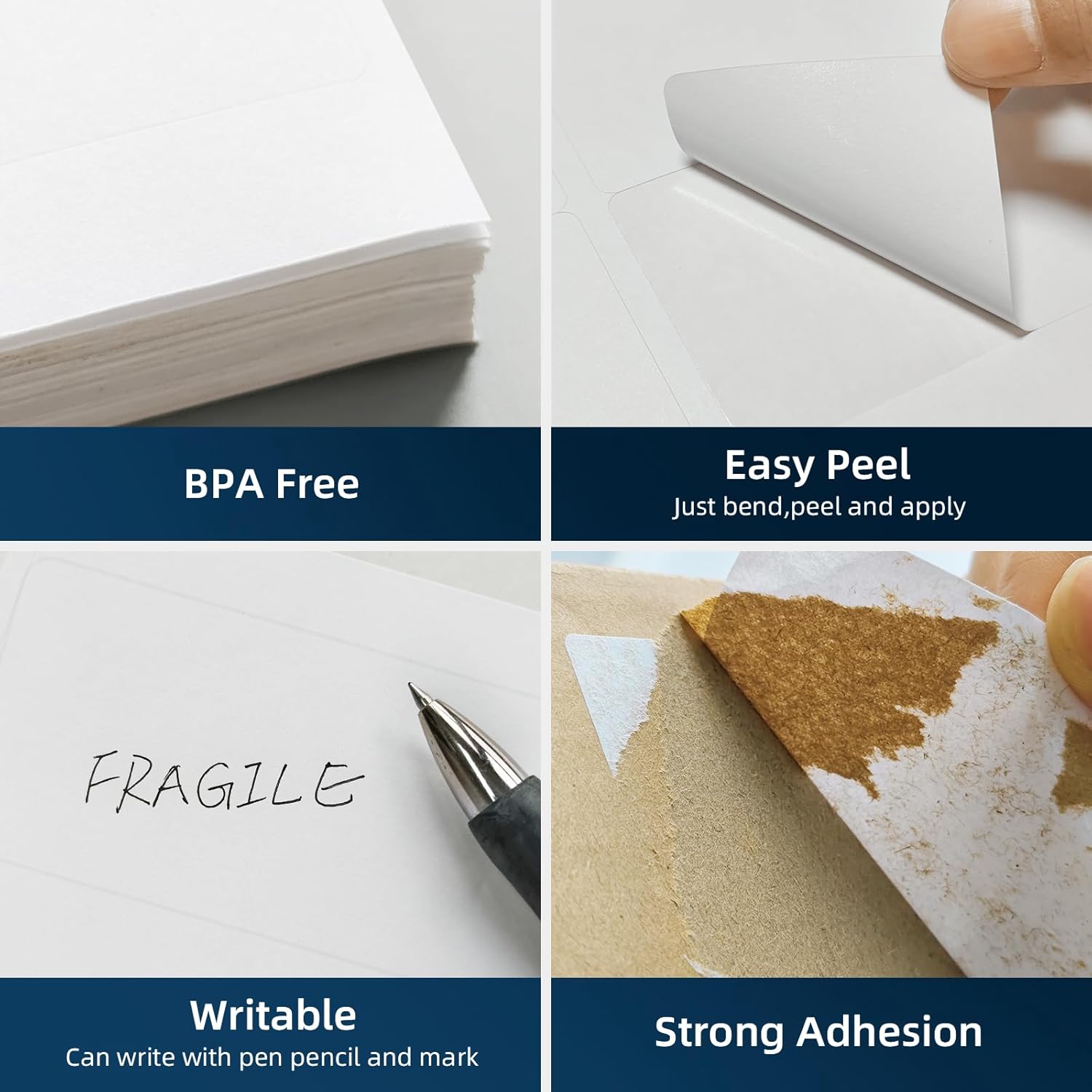 - Easy to use: Labels remove quickly and easily from the backing sheet without any tears or rips; simply bend the label sheet to expose the pop up edge, peel off your label and apply.Matte white surface is similar to writing paper. Write on it with pens, pencils or markers.