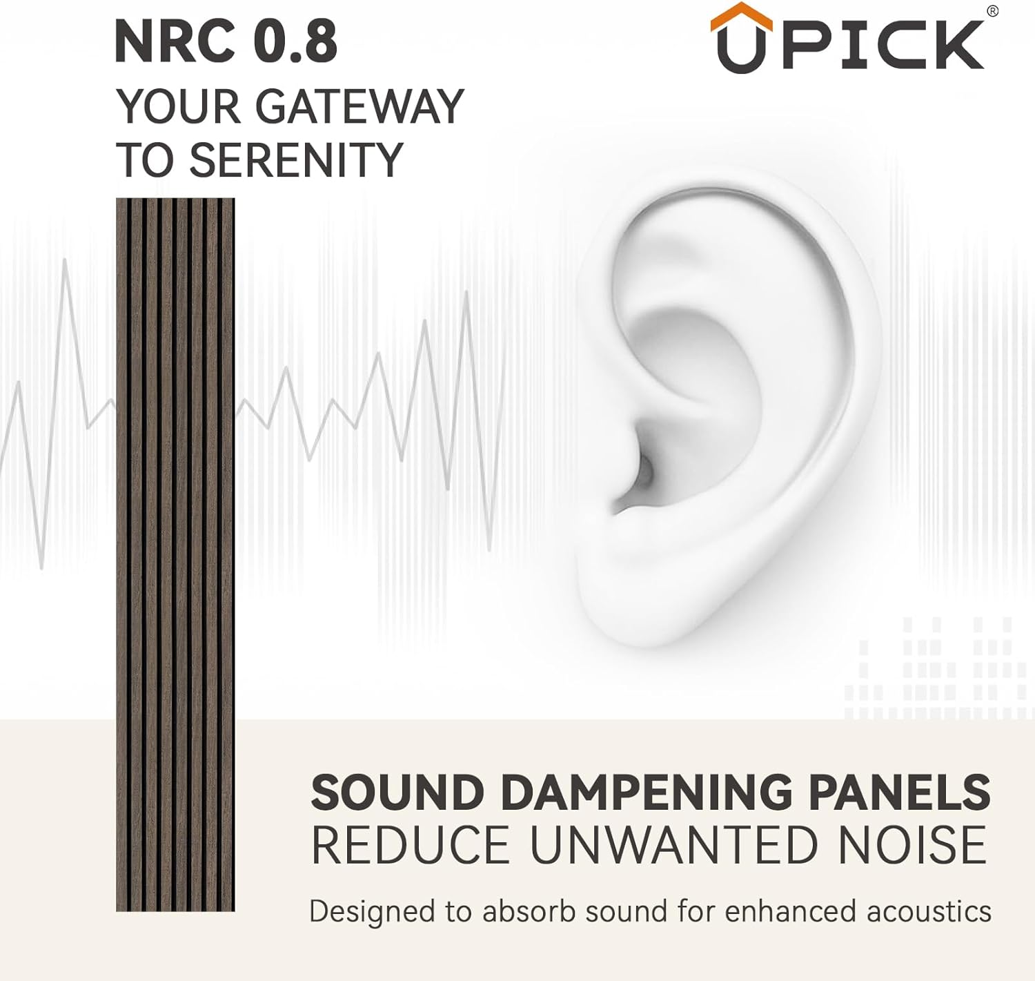 Upick MDF Acoustic Wall Panels, 4 Pack 94.5" x 12.6" 3D Slat Wood Panels for Wall, Soundproof Panels for Interior Wall Decor, Dark Walnut