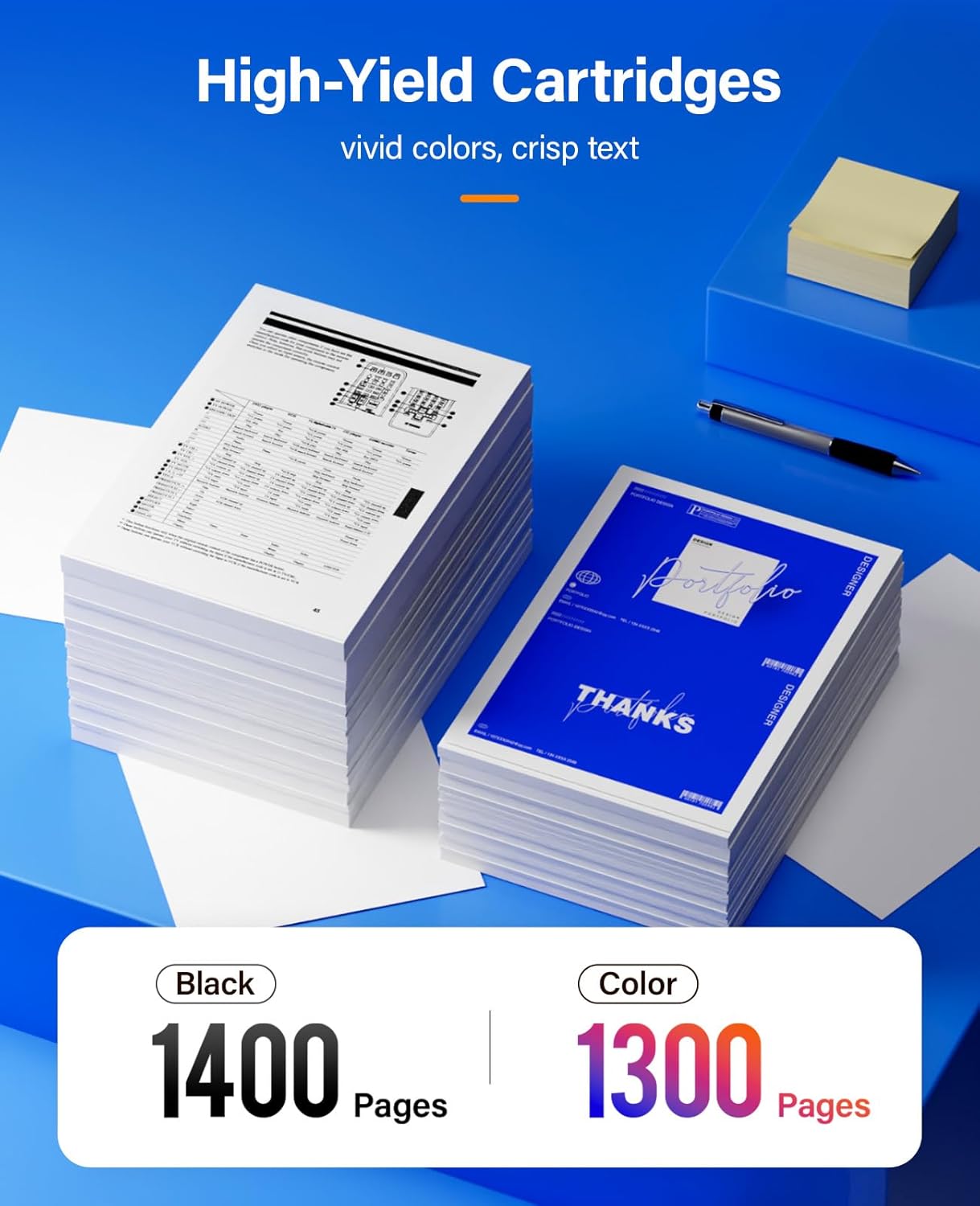 - High Yield Pages: 1,400 pages for Black and 1,300 pages Color toner cartridge (A4, 5% Coverage).