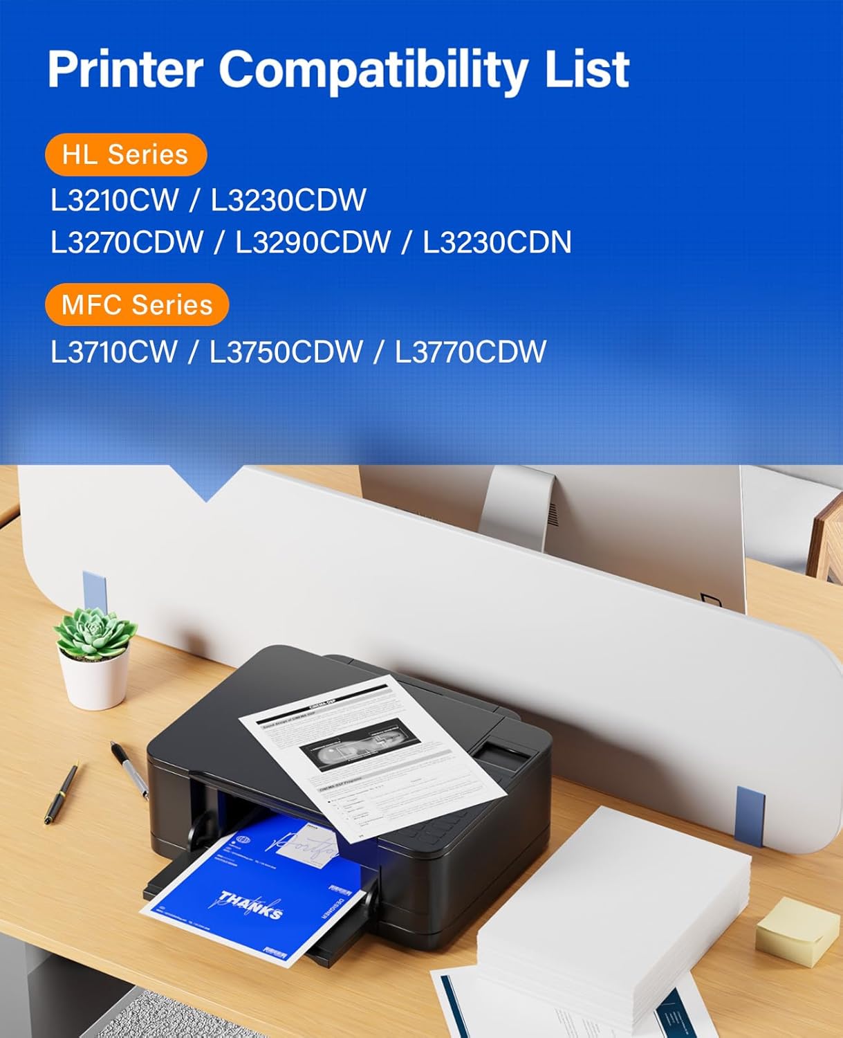 - Compatible Printer: Compatible with Brother HL-L3210CW, HL-L3230CDW, HL-L3270CDW, HL-L3290CDW, HL-L3230CDN, MFC-L3710CW, MFC-L3750CDW, MFC-L3770CDW (Please check that your printer model matches the printer model of this toner cartridge before placing an order).