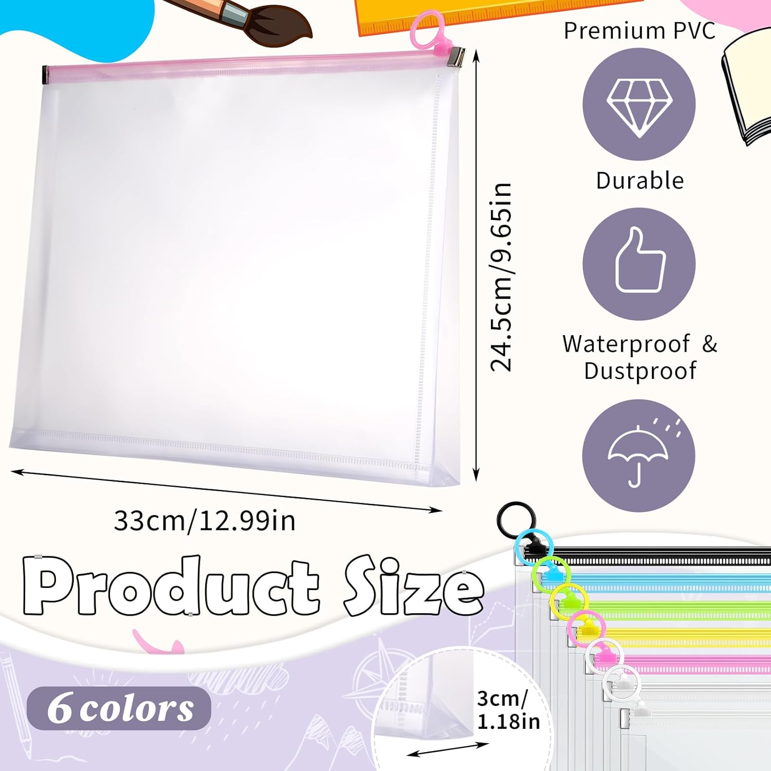 Yexiya 30 Pcs Back to School Clear Plastic Zip Envelope A4 Zipper Document Folder 13 x 9.7In File Folder Expanding Envelope Pouch for Paper Pencil Storage Office Supplies (Stylish Colors)