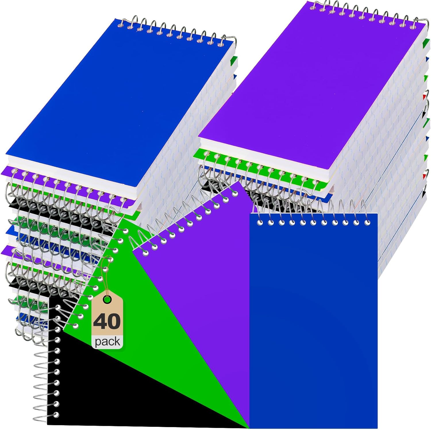 40 Pcs Small Pocket Notebooks 3 x 5 Inch Mini Memo Spiral Notepads Top Bound College Ruled Lined Note Pads for Back School Office Journaling Noting, 75 Sheets/Pad (Dark Color)