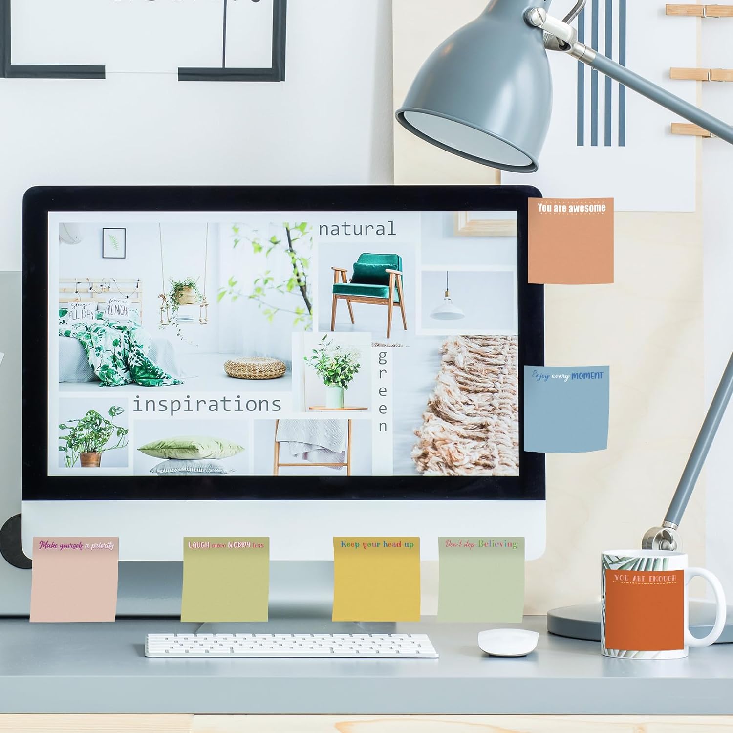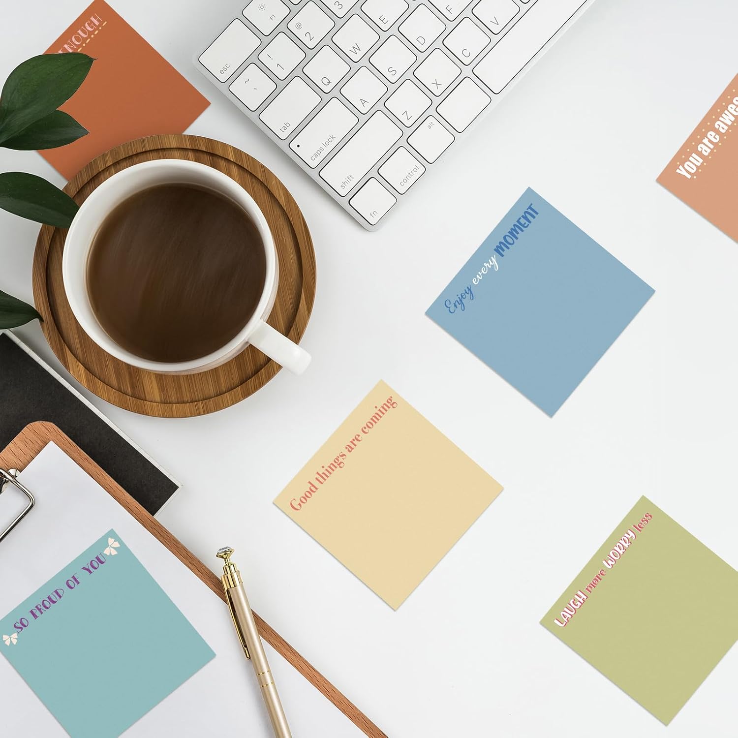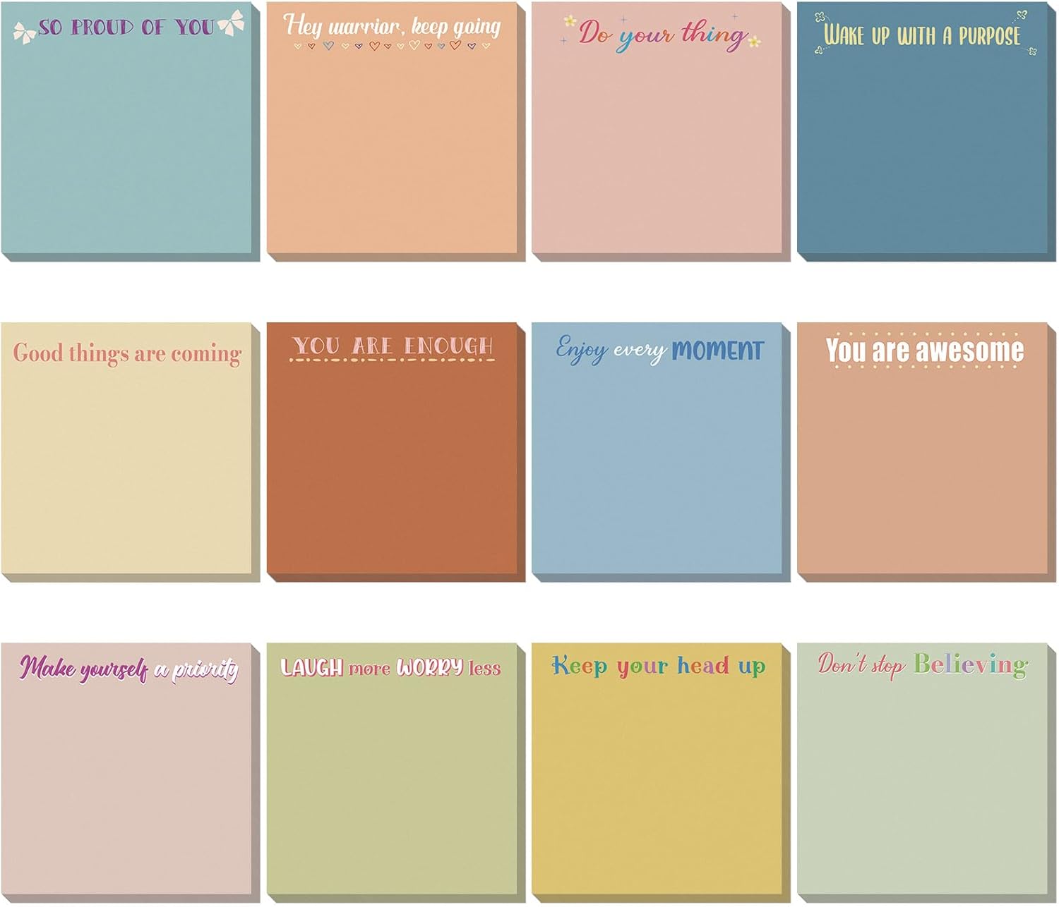 Zonon 12 Pieces Inspirational Sticky Notes 3 x 3 Inch Motivational Fun Notepads Positive Gifts for Teacher Nurse Coworkers Work Studying Supplies(Morandi Style)