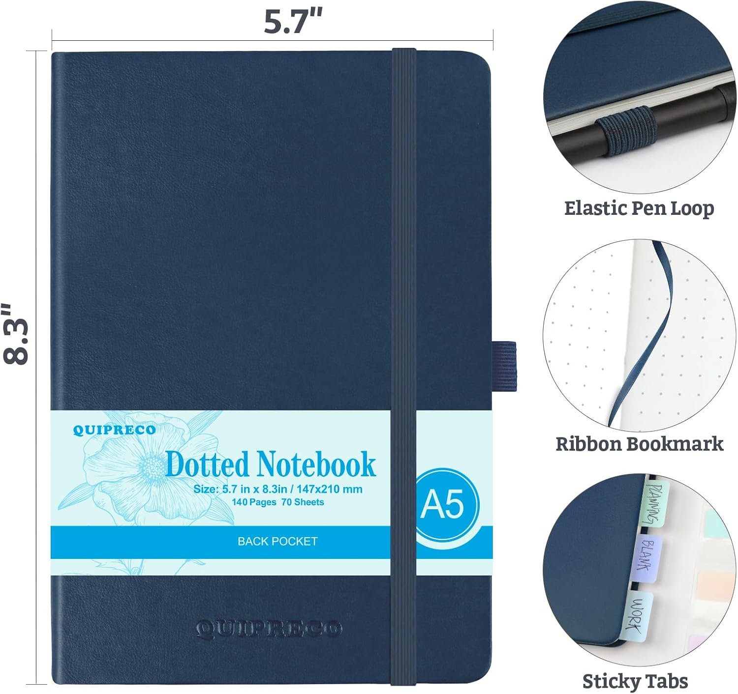 Hardcover Lined Bullet Dotted Journal Notebook, A5 140 192 Pages 100 120Gsm Paper College ruled for School,Work,Travel,and Daily Planning,5.7''*8.3'' (1, Navy, A5 Dotted)