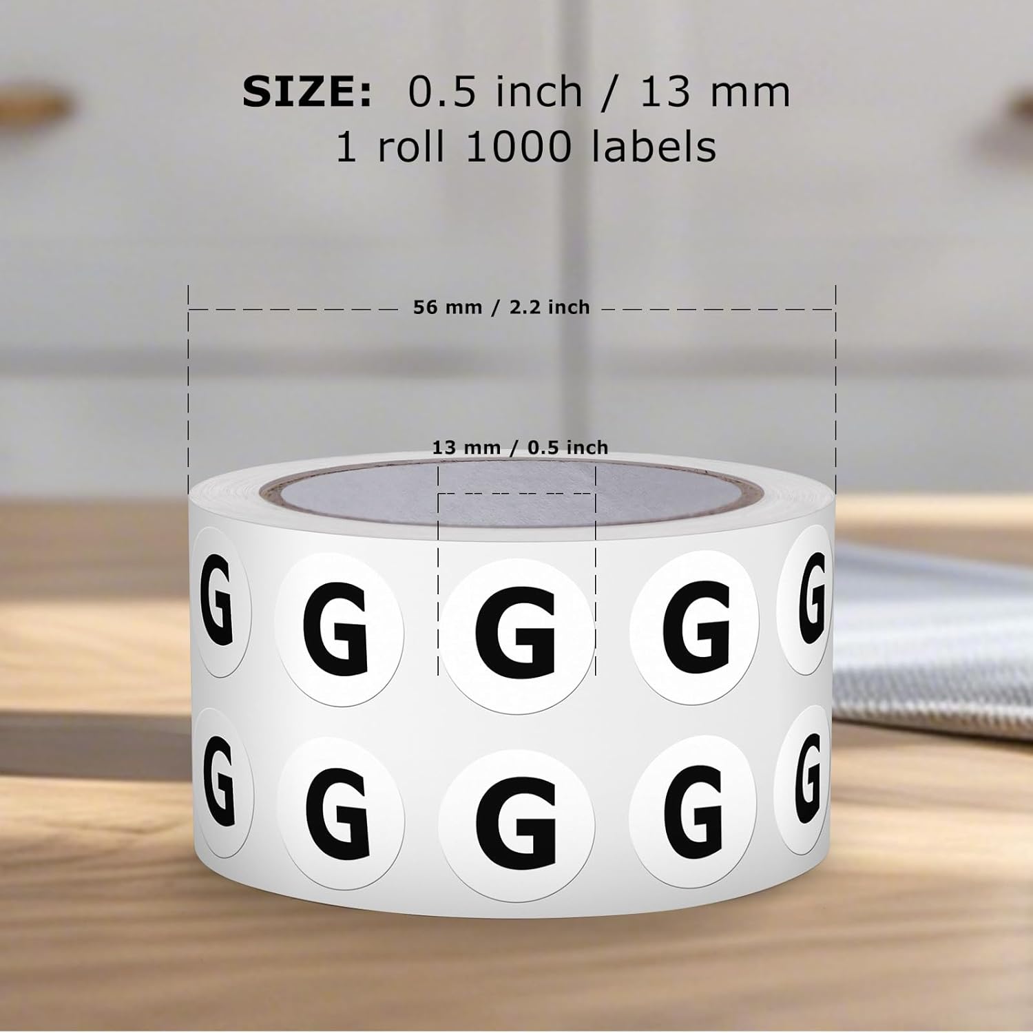 Letter G Round Labels 0.5 Inch Vinyl Circle Capital Alphabet Stickers Self-Adhesive Removable Waterproof Dots Tags for Home Office Inventory 1000 PCS