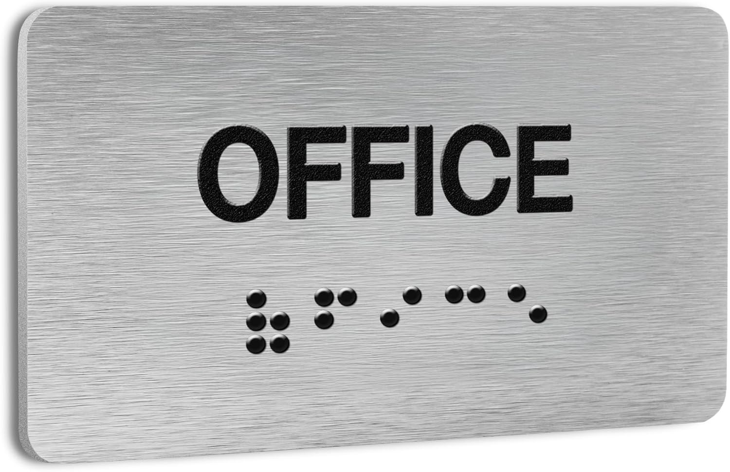 Office Signs for Business and Office, ADA Signs with Raised Text & Grade 2 Braille, Easy Installation with Adhesive Pad – Brushed Aluminum/Silver