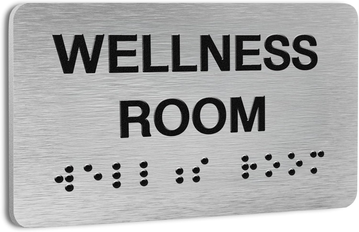 Wellness Room Signs for Business and Office Sign, ADA Signs with Raised Text & Grade 2 Braille, Easy Installation with Adhesive Pad – Brushed Aluminum/Silver